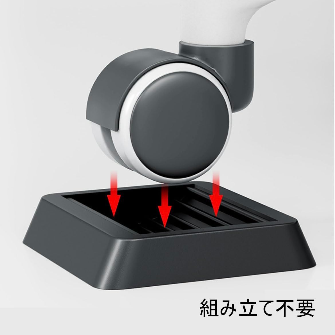 家具やベッドのすべてのホイールの下にセットするだけで、簡単に固定できます。