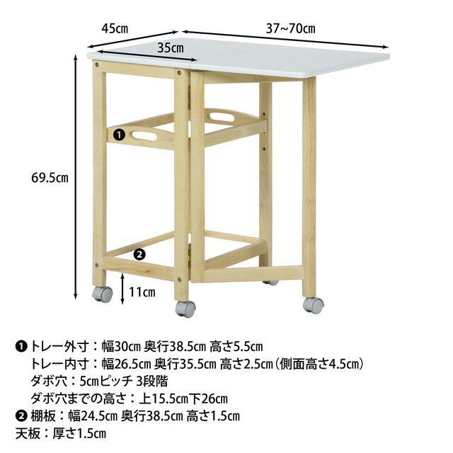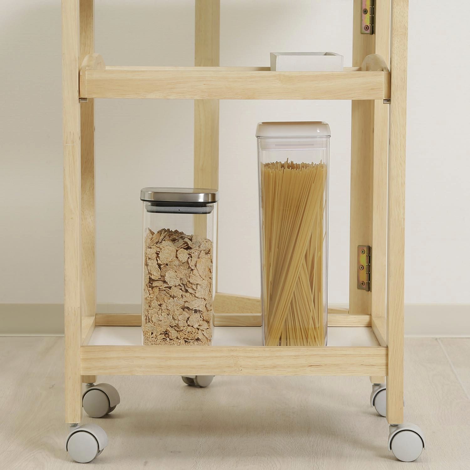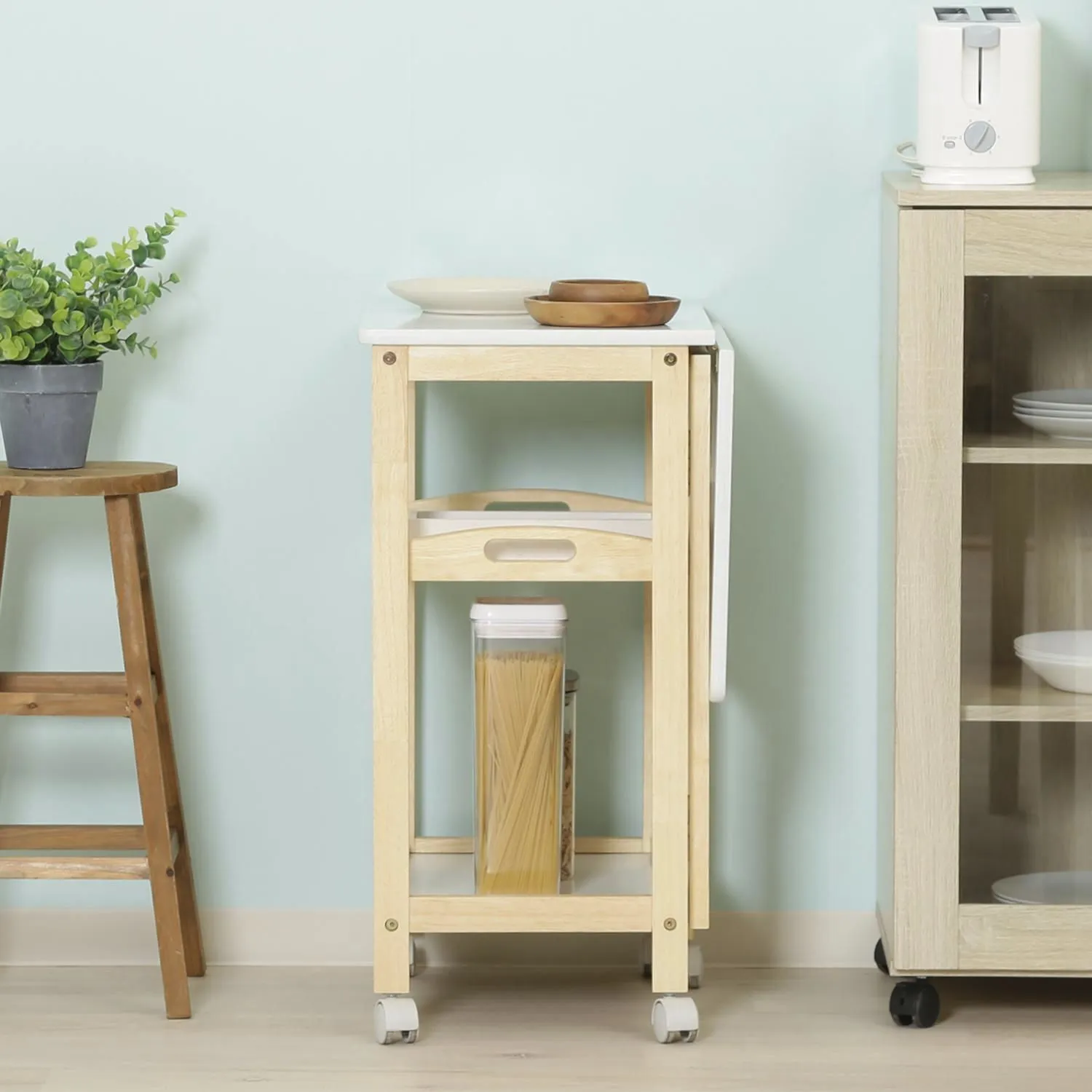 キッチンに1台あったらとっても便利! ナチュラルテイストのキッチンワゴンです♪ *バタフライ天板で使用スペースの調節可能 *UV塗装で傷に強い天板 *組み立て商品