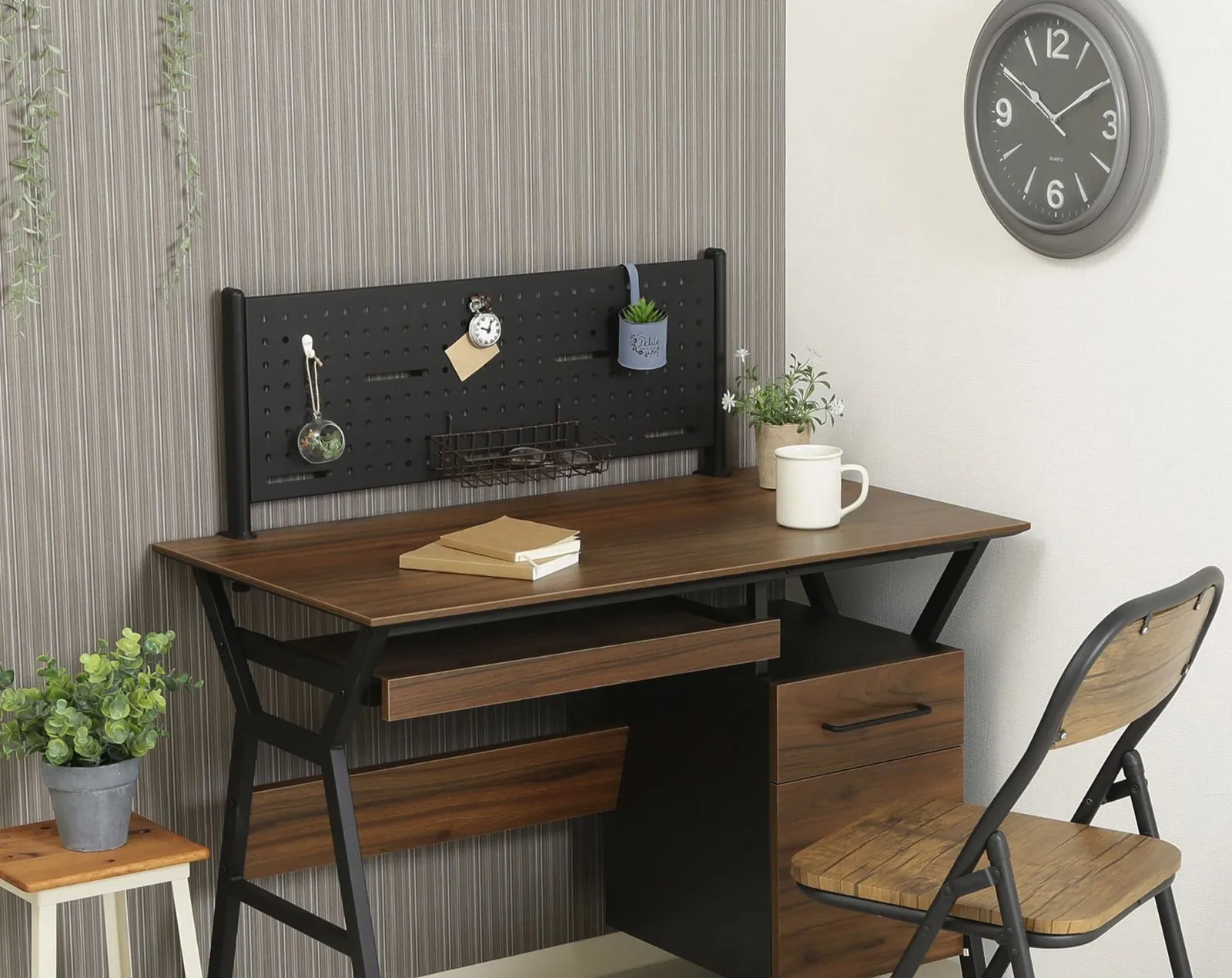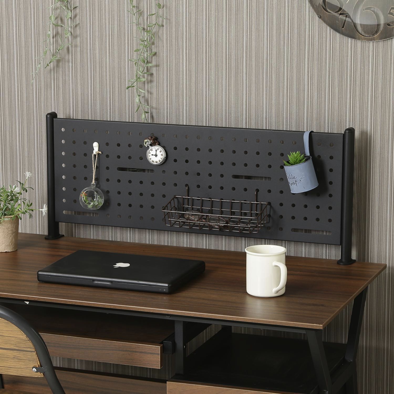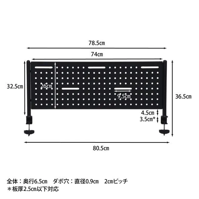 「デスククレバー」用のデスクパネルです。 パネルの空いた穴に金具をつけることで、物を取り付けることが可能です。