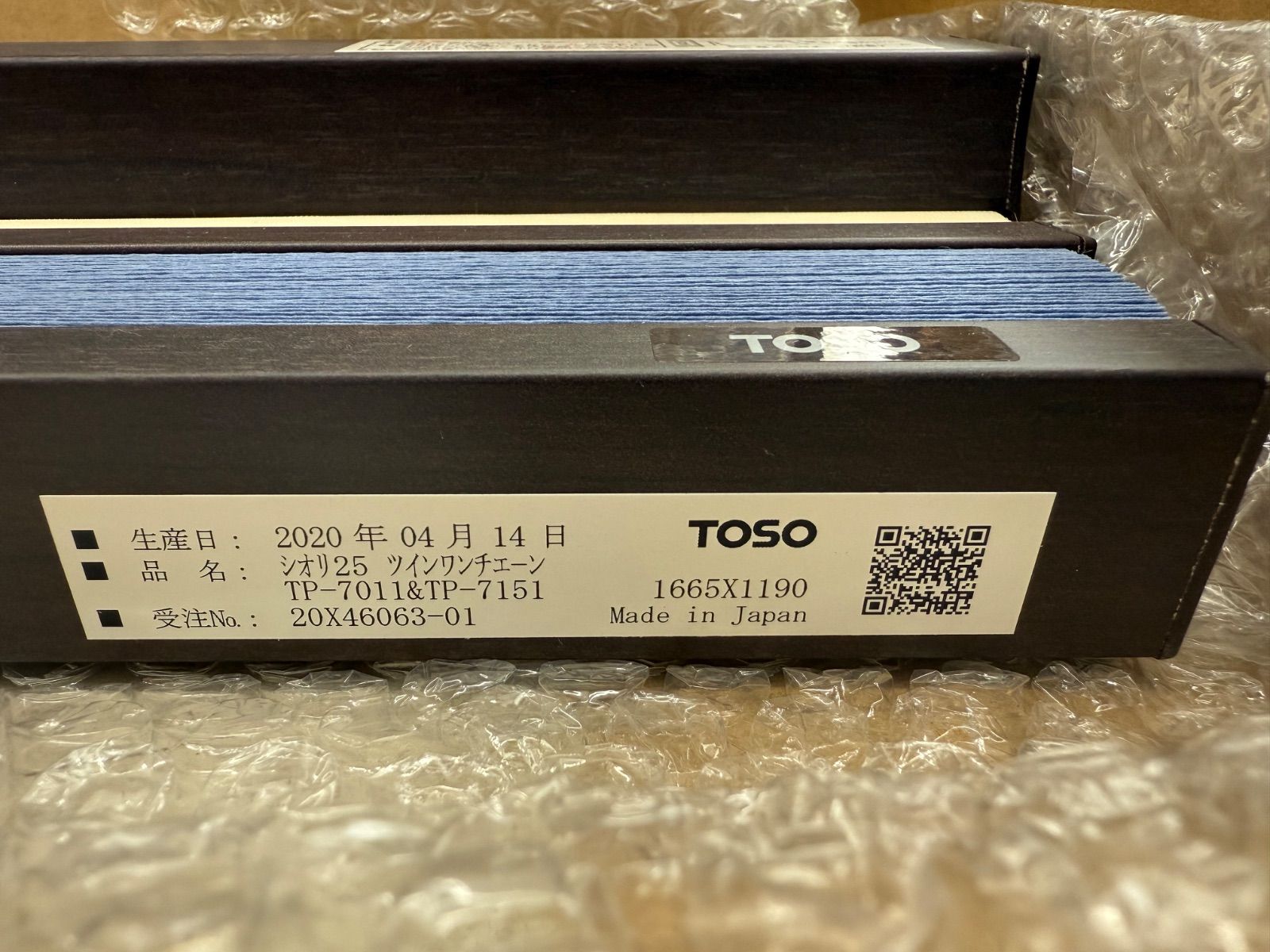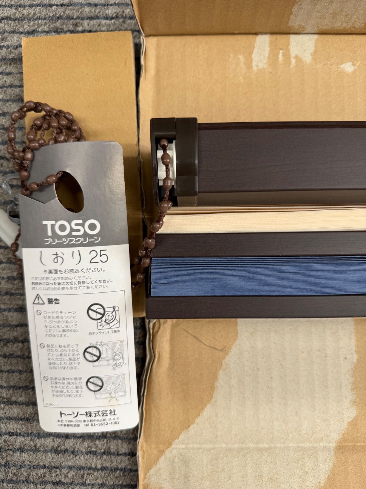 TOSO しおり25 プリーツスクリーン ツインタイプ 上部レース生地:ハルカTP7151,TP8132(オフホワイト) 下部厚地:葉月TP7011,TP8040(ネイビー) ワンチェーン式