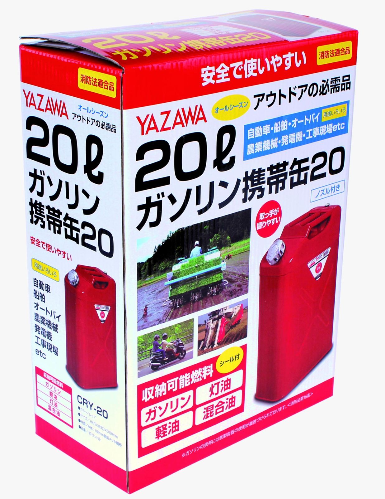 矢澤産業(Yazawasangyo) ガソリン 携帯缶 縦型 20L レッド レジャー マリン スポーツ CRY20