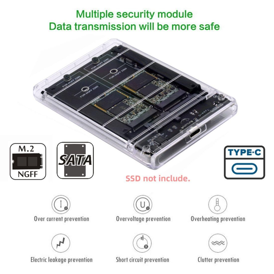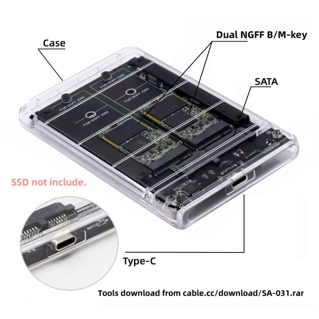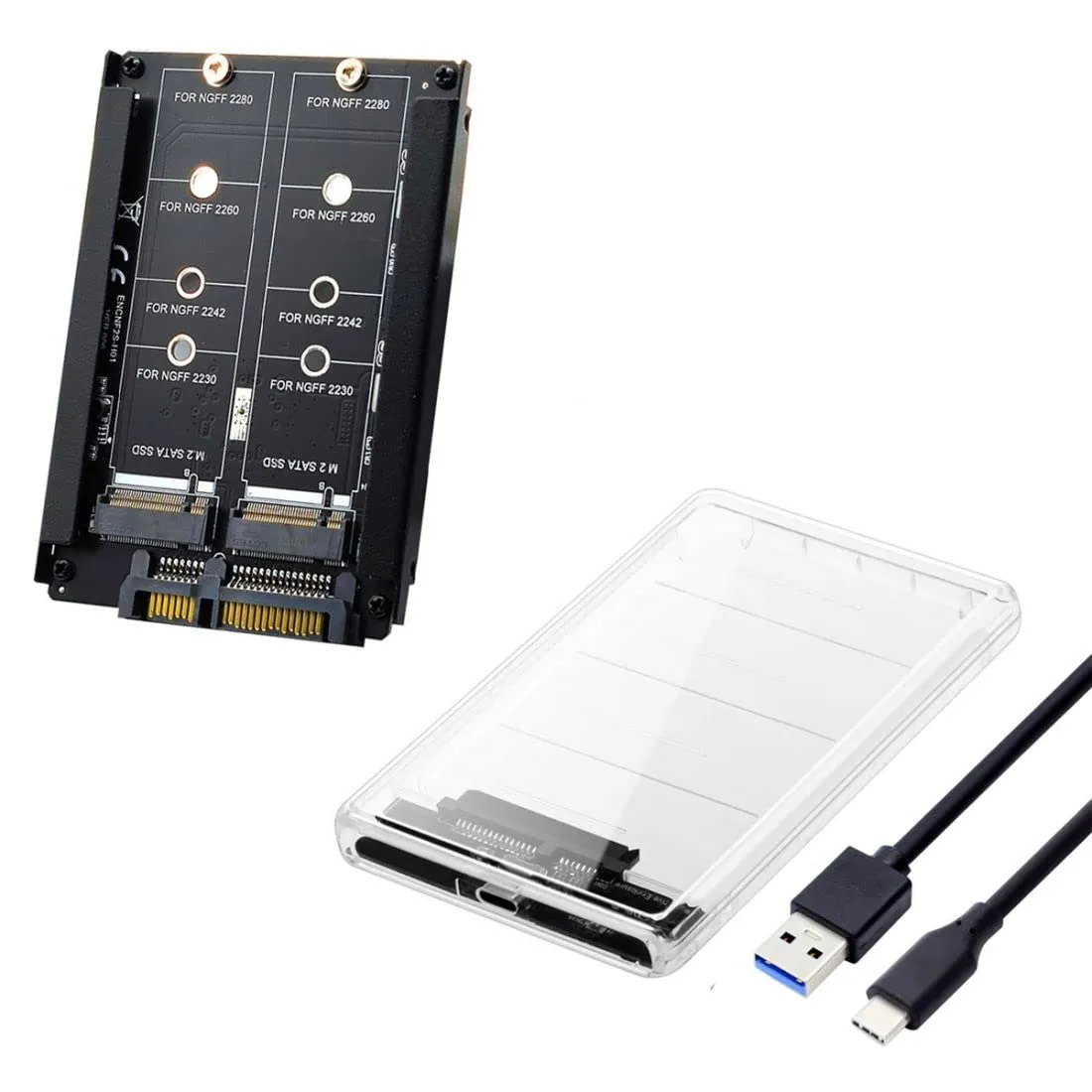 chenyang M.2 NGFF SATA SSD 2イン1コンボJBODアダプター 2.5インチUSB Cハードドライブエンクロージャ付き