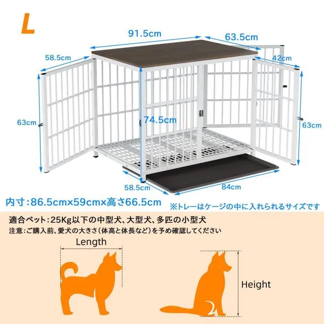 ◆商品名:BingoPaw犬用ケージ屋根付き大型犬中型犬2匹小型犬白頑丈トレー付き室内犬小屋木製おしゃれペットケージウッディサークルインテリアドッグケージLホワイト