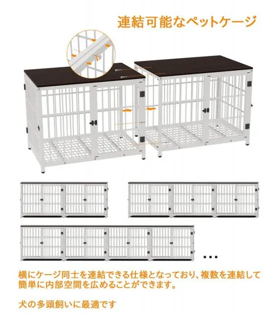 【連結可能なペットケージ】横にケージ同士を連結できる仕様となっており、複数を連結して簡単に内部空間を広めることができます。犬の多頭飼いに最適です