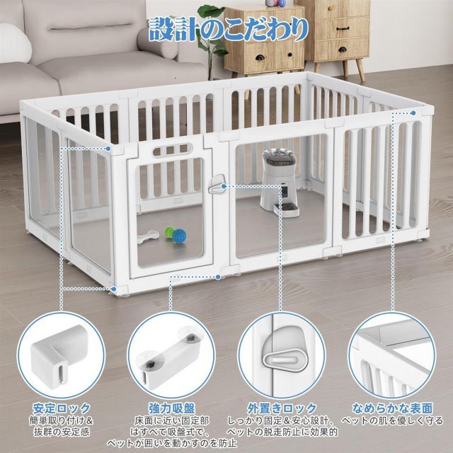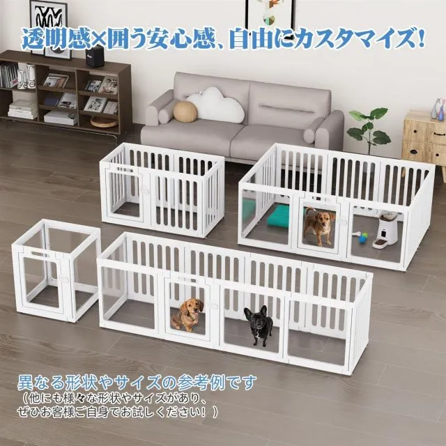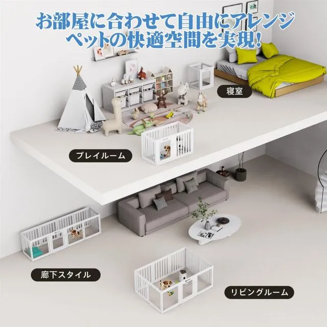 自由なレイアウトで空間にぴったりフィット:複数のパネルを自由に組み合わせて、正方形と長方形などさまざまな形状に調整可能。ペットの成長や活動量に合わせて最適なサイズにカスタマイズできます。