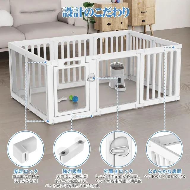 圧迫感のないクリアパネルで快適な見守り空間:高透明アクリルパネルで視線を遮らず、どこからでもペットの様子を確認できます。開放感のデザインが部屋に自然に馴染み、圧迫感を与えません。樹脂製の強固な構造が安定感を提供し、ペットが安全に過ごせる環境を作ります。