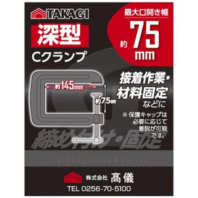 【送料無料】高儀 深型Cクランプ 75mm×145mm 工具 接着 材料 固定 作業 着脱可能 保護キャップ付 たかぎ