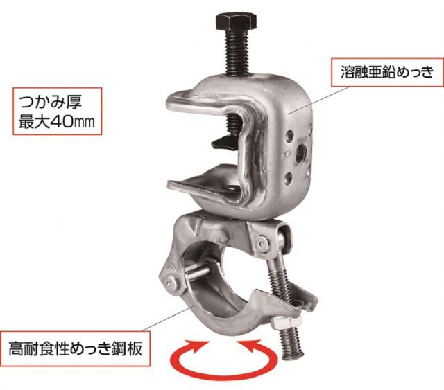 ◆商品名:国元商会KSコ型クランプ2型自在(1個入)鉄骨用クランプ 鉄骨へのつかみ厚は最大40mm確保。 独自の丸みを帯びた形状が、振動や衝撃を吸収。 ボルト先端に自在構造の皿ばねを設置。振動を吸収し鉄骨面への疵付きを最小限に抑えます。 適応単管径:φ48.6、φ42.7。 鉄骨に単管を簡単に緊結できるクランプ。 商品番号:20251215235103_168