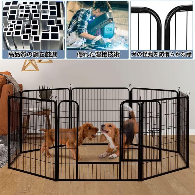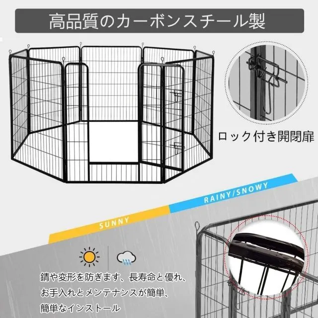 【高品質の金属材料】―ペットサークルは高品質の金属材料で作られており、錆や変形を防ぎます、長寿命と優れ。安定な構造に広い空間なので、室外・室内両方に兼用します。