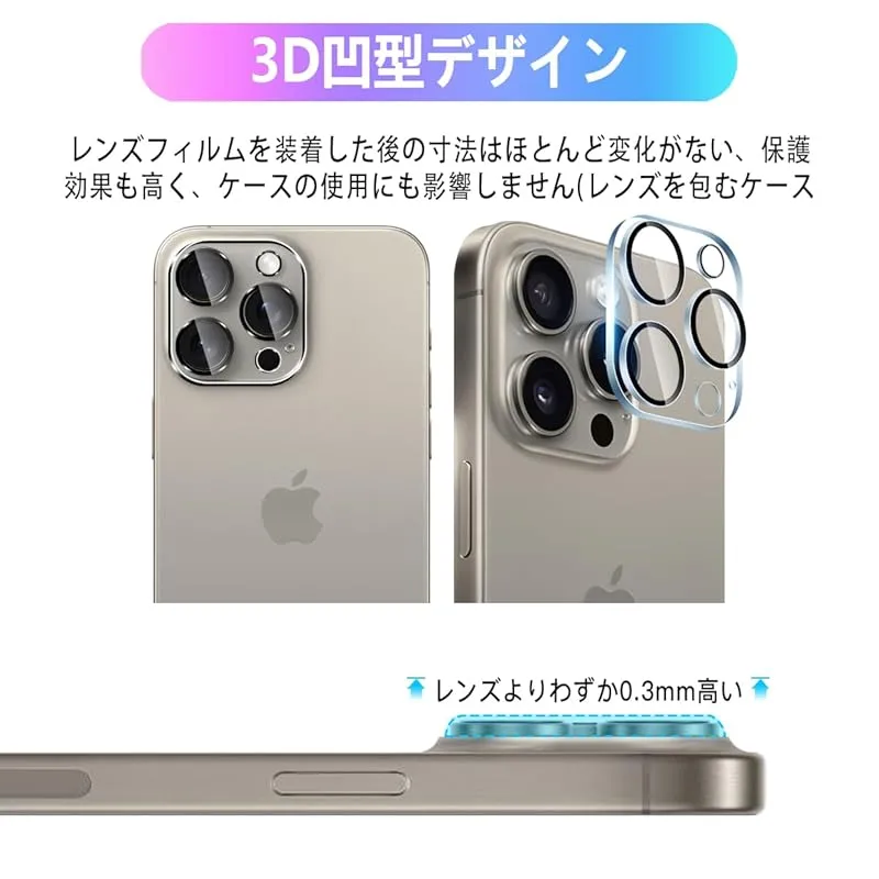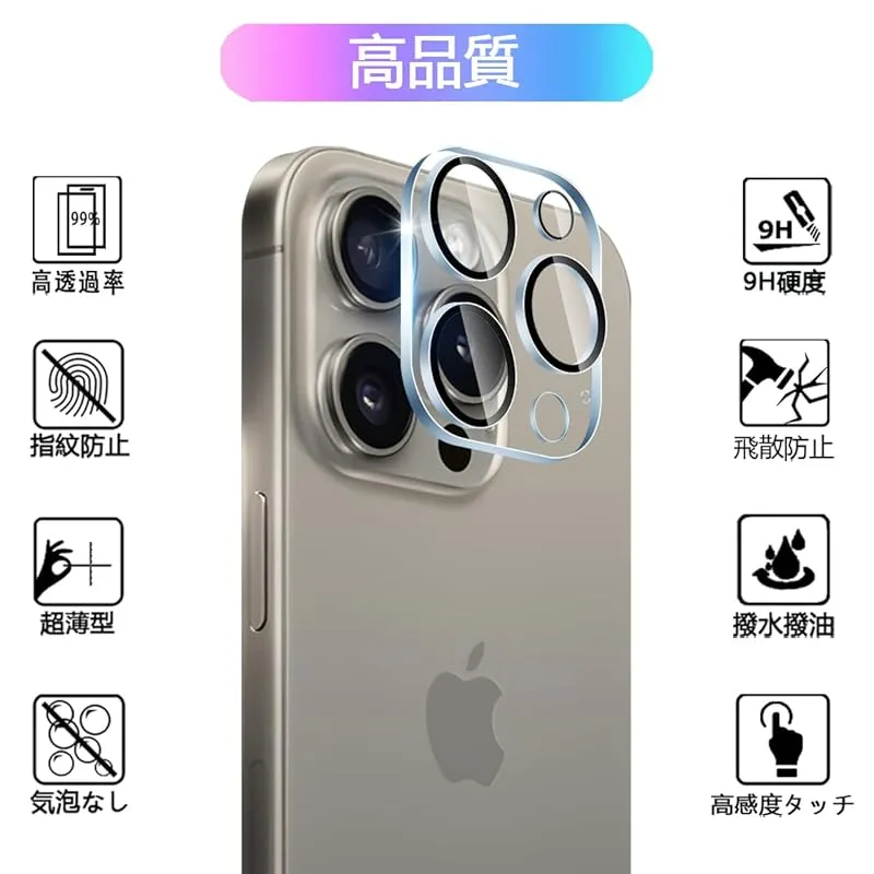【日本製素材旭硝子製 】 表面硬度9H 対応 iPhone15Pro/iPhone15promax レンズフィルム カメラ保護フィルム レンズ保護ガラス