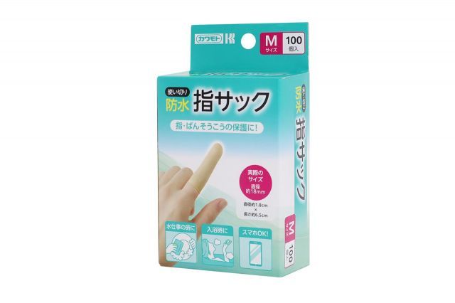 【送料無料】カワモト 防水指サック 使い切り Mサイズ 100個入