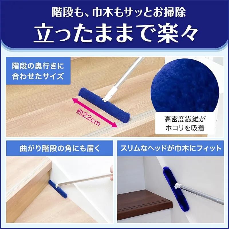 棒状のモップなのでカーブしている階段の角や、巾木にも使いやすいです。