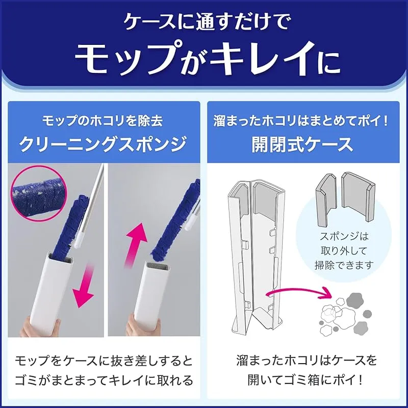 ケースに通すだけでいつでもモップがキレイ!ケースに溜まったホコリはまとめてポイ!