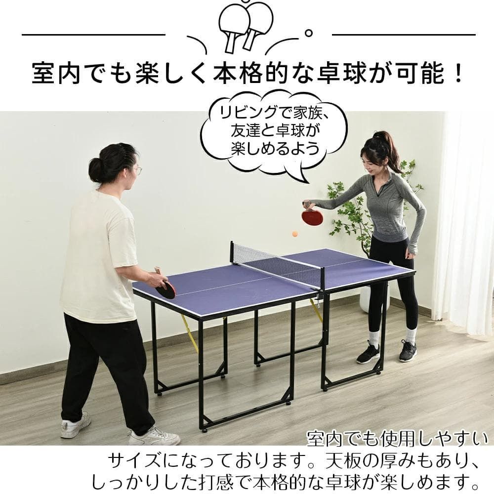 【商品名】:卓球台 卓球 ネット付 ラケット付 ピンポン球付 折りたたみ 家庭用 コンパクト