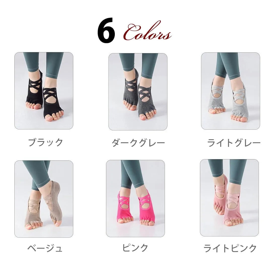 [AVILMORE] ヨガソックス ダブルクロス 5本指 滑り止め付き レディース バレエ ピラティス ヨガ 靴下 ヨガウェア グリップソックス
