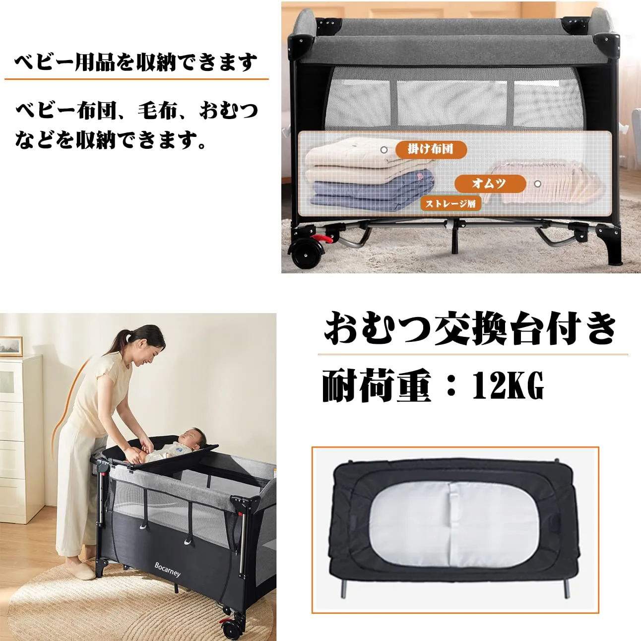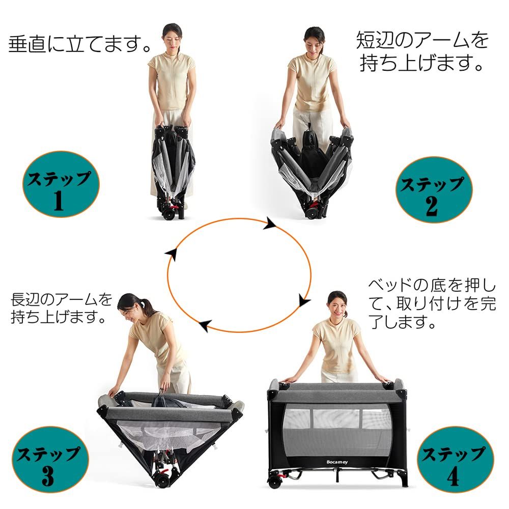 ベビーベッド プレイヤード ベビーサークル 折りたたみ お昼寝 ベビートレンド ナーサリーセンター ベビー オムツ替え おむつ交換台 お昼寝 新生児 出産祝い 安全認証済み (PSC認証)新生児~3歳まで