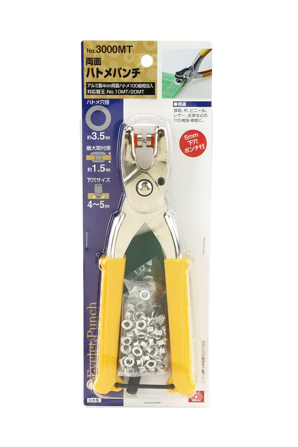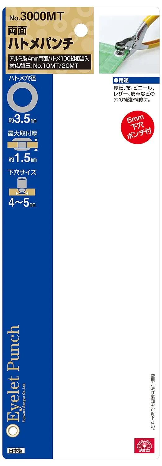 SK11(エスケー11) 両面ハトメパンチ アルミ 真鍮用 ハトメ穴径4mm アルミ製ハトメ玉100組相当入 No.3000MT