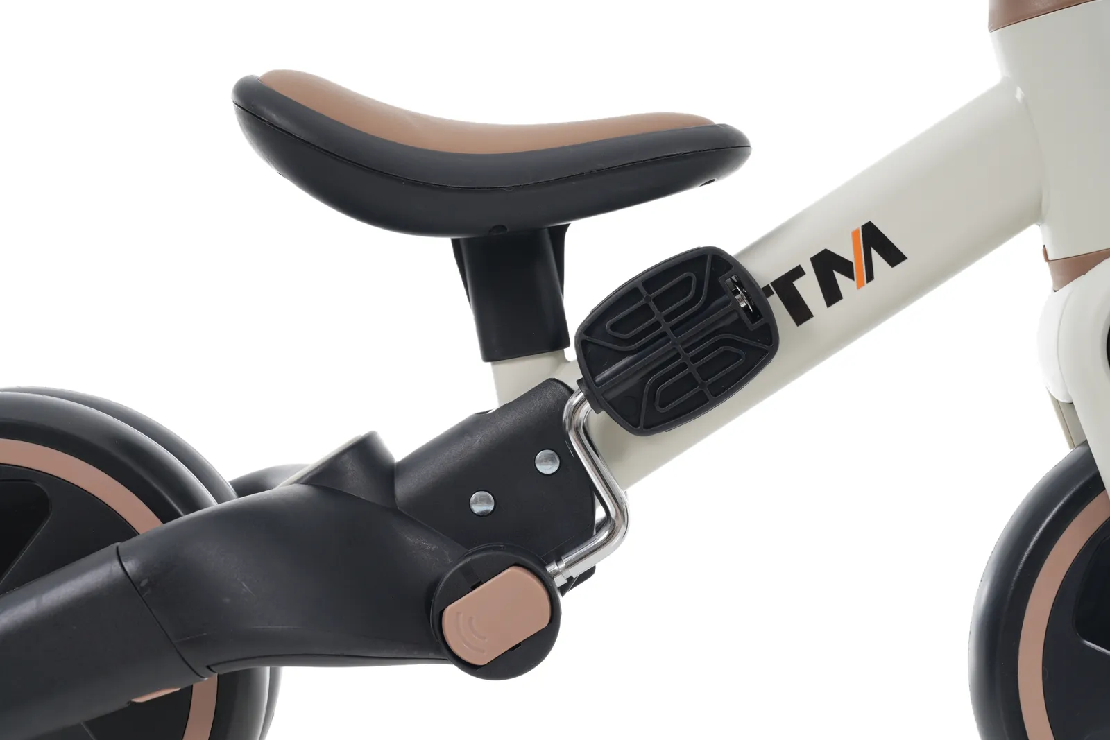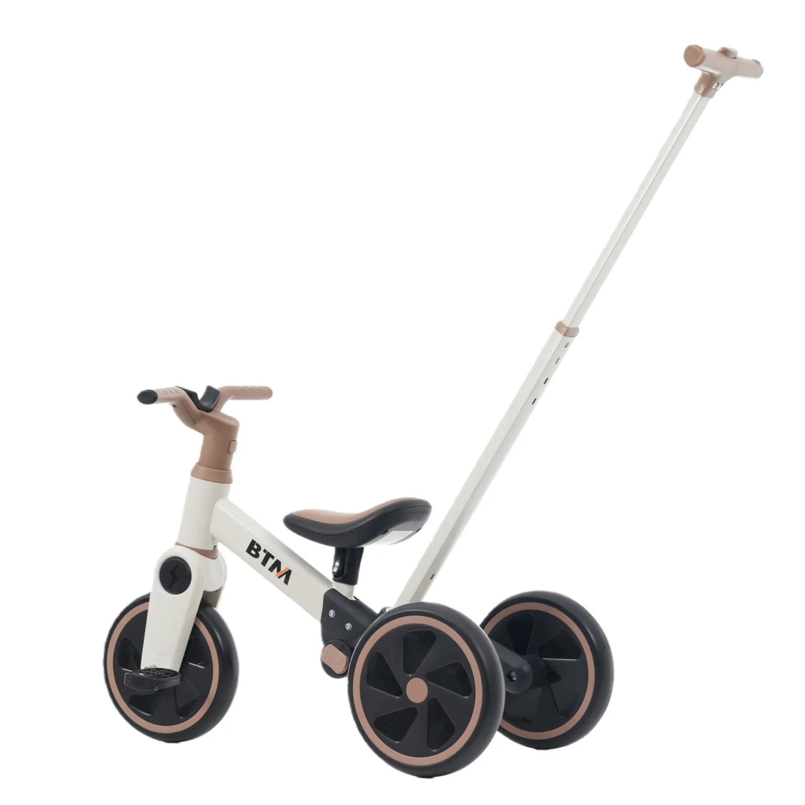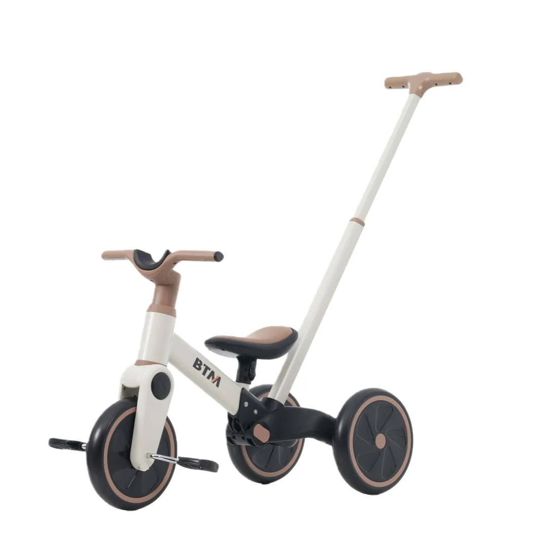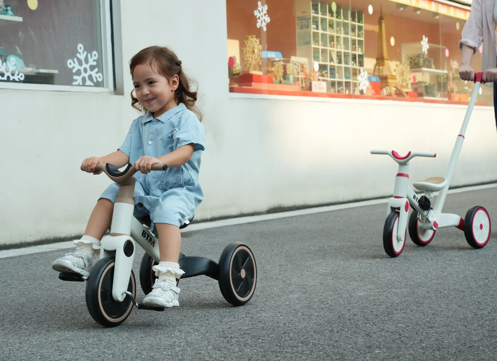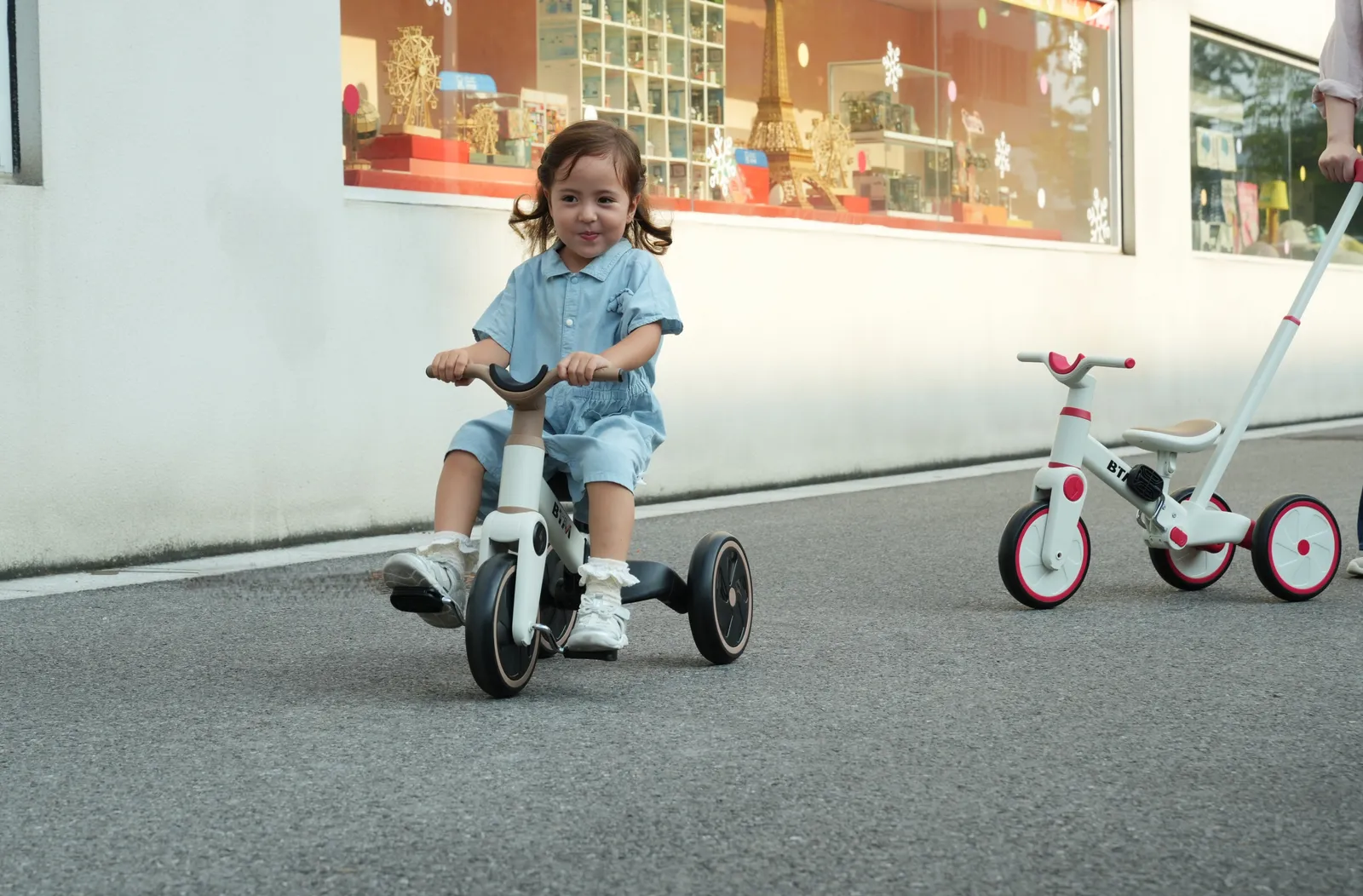 【一台4役】手押し三輪車モード、三輪車モード、ランニングバイクモード、自転車モード。様々な使い方があり、工具なしで組み合わせできです。お子様の成長に合わせて4階段でご使用いただけます。