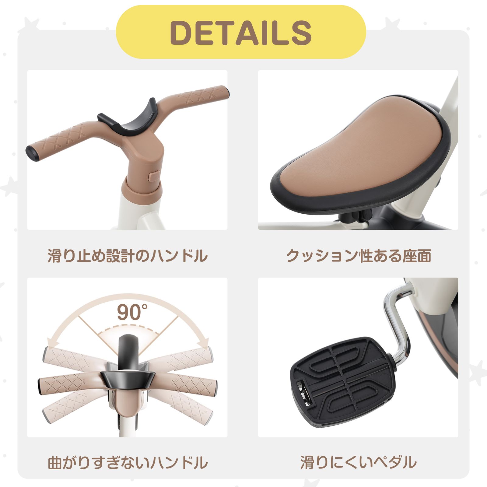【かじとりでき】コントロールバーは心地良い素材を使用し、ママの操作をもっと安くなります。それに、コントロールバーの長さは4段階調節できます。かじとりできます。