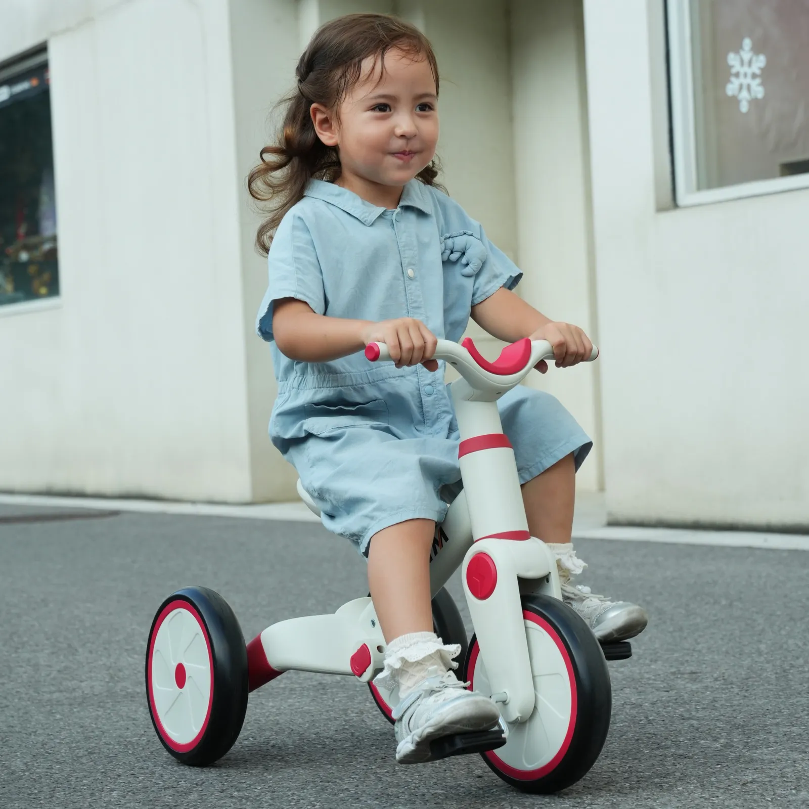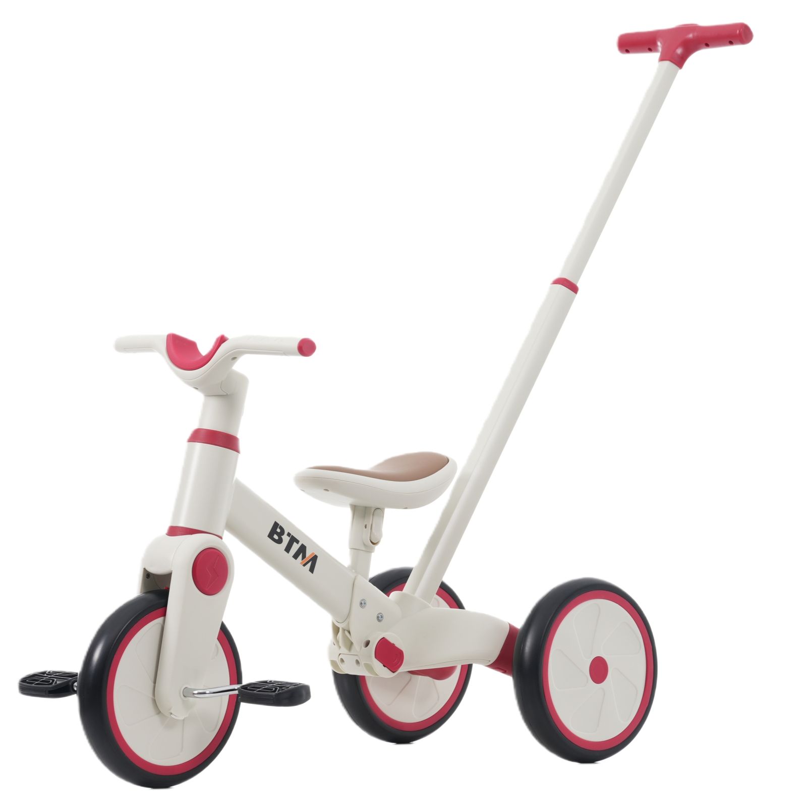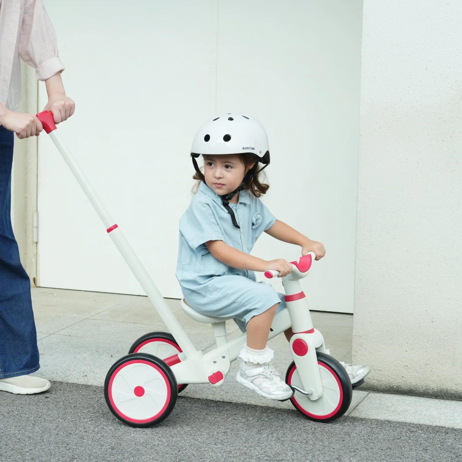 【一台4役】手押し三輪車モード、三輪車モード、ランニングバイクモード、自転車モード。様々な使い方があり、工具なしで組み合わせできです。お子様の成長に合わせて4階段でご使用いただけます。