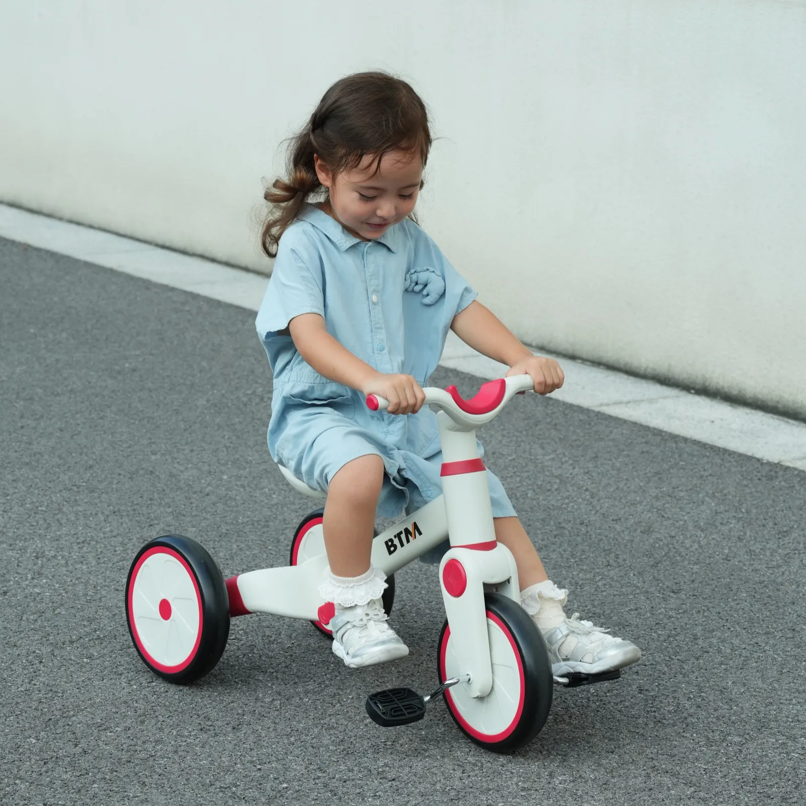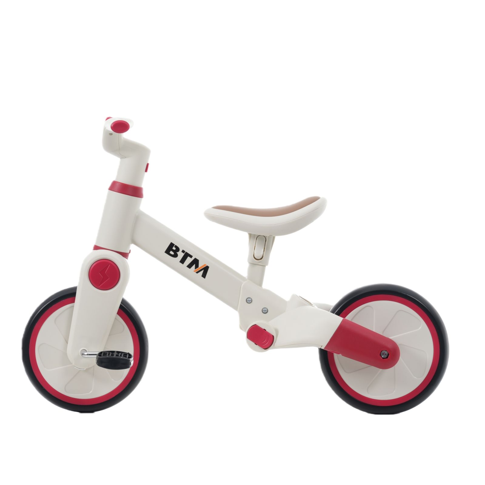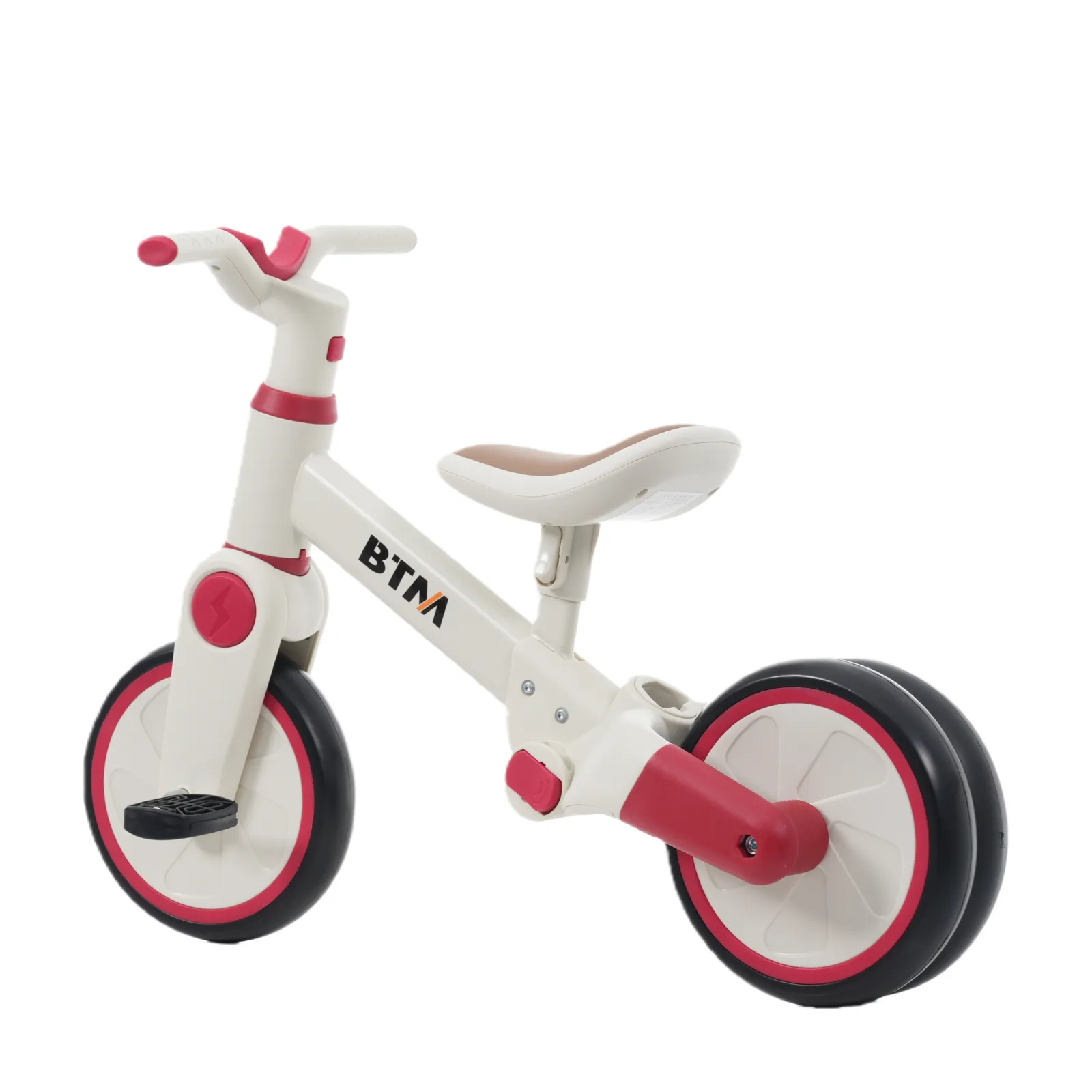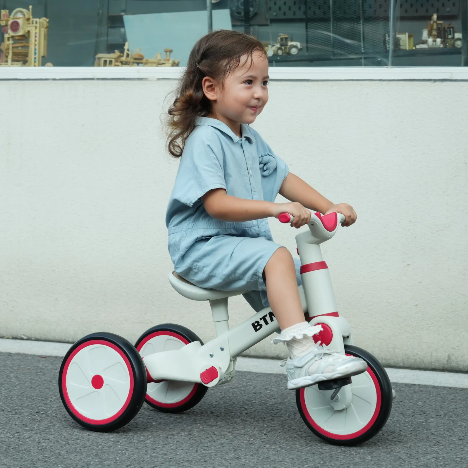 【一台4役】手押し三輪車モード、三輪車モード、ランニングバイクモード、自転車モード。様々な使い方があり、工具なしで組み合わせできです。お子様の成長に合わせて4階段でご使用いただけます。