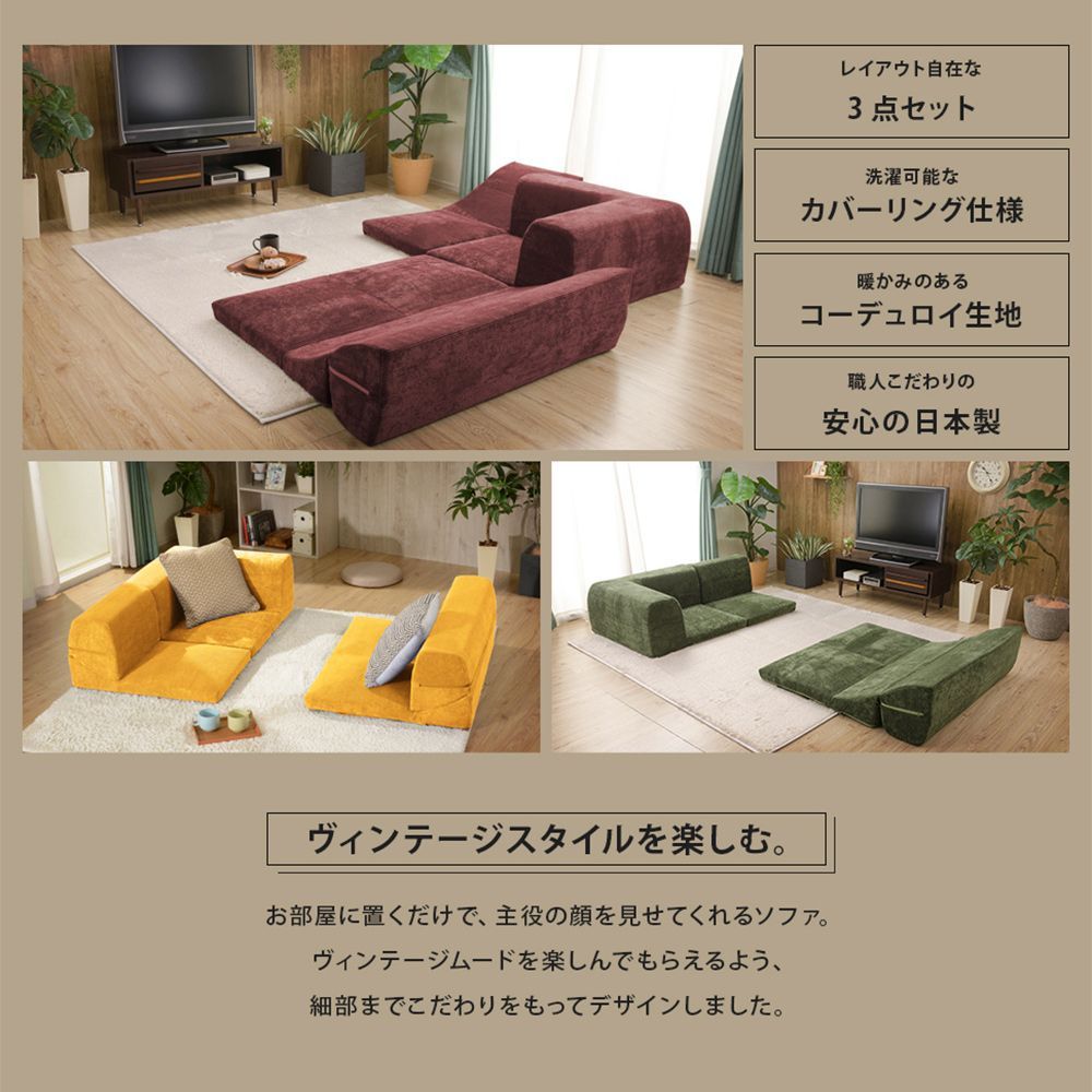 「和楽コーナーソファ ヴィンテージ」3点セット