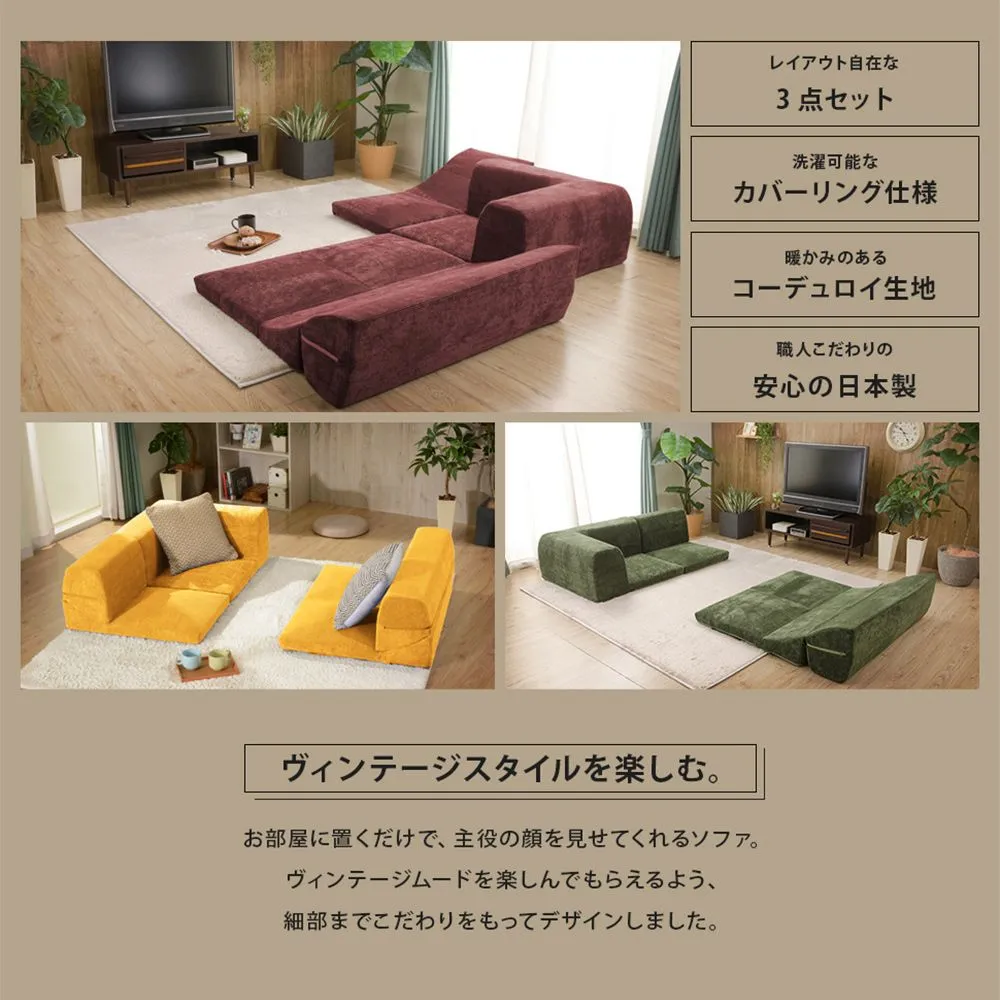 ◆スタイルに合わせて変化する、レイアウト自在な3点セットのローソファです。