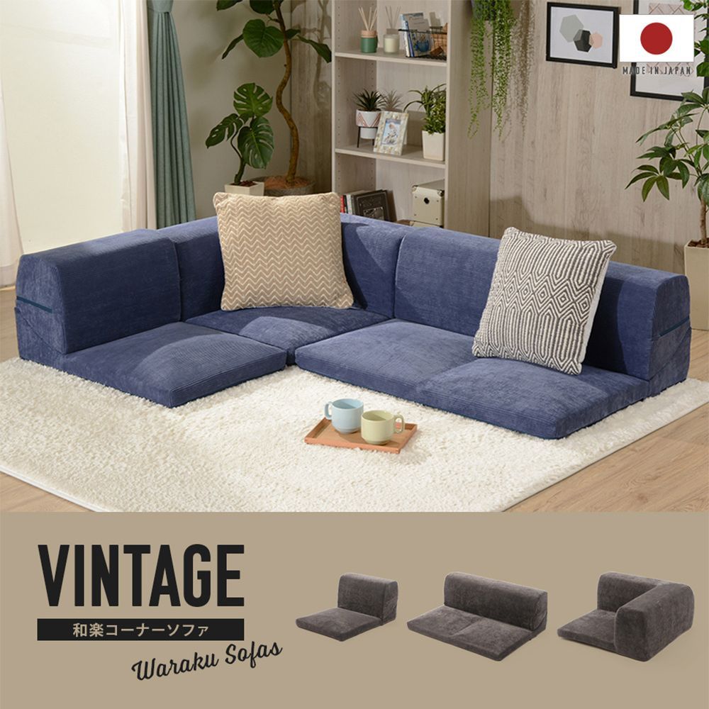 商品名:和楽コーナーソファ ヴィンテージ3点セット a573-vintage