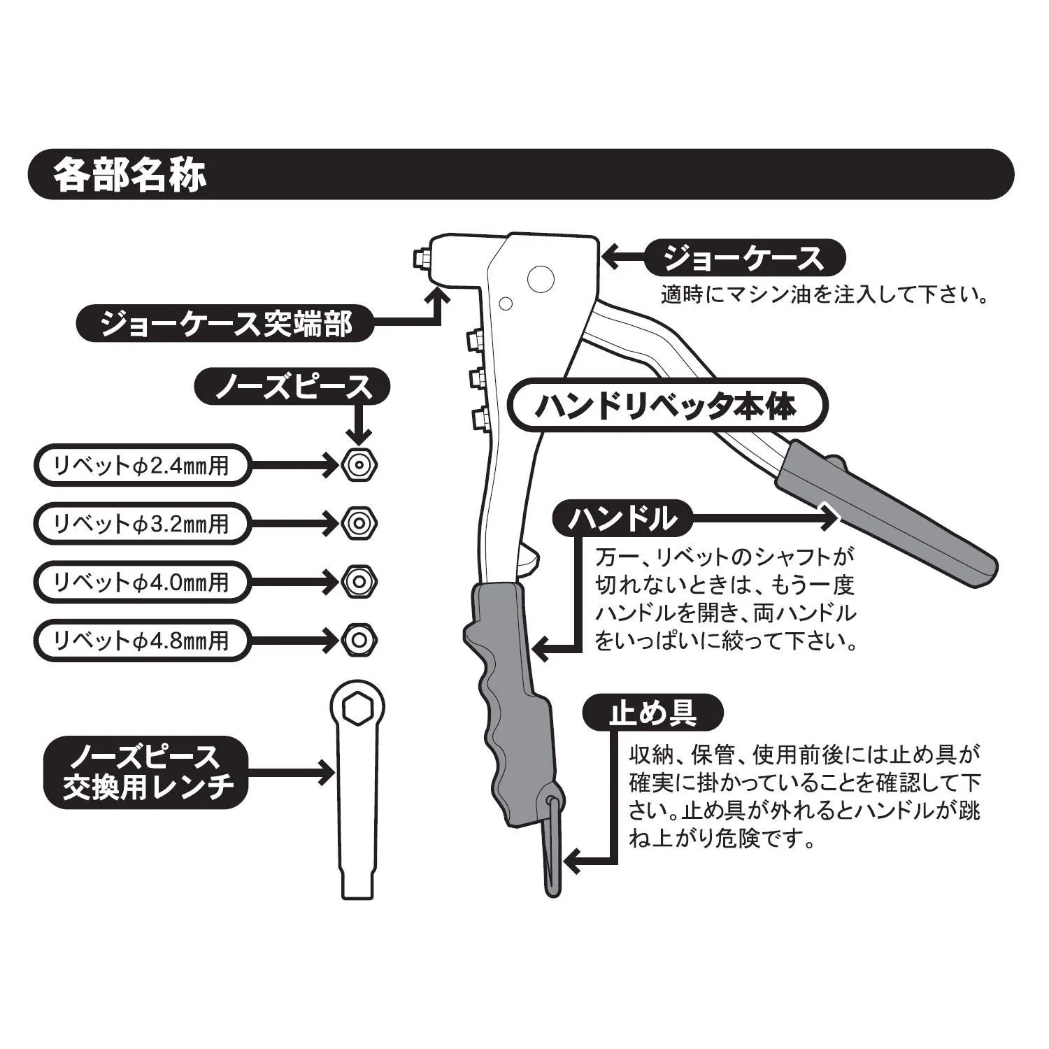 本体材質:鋳物、適応リベットサイズ:2.4mm、3.2mm、4.0mm、4.8mm