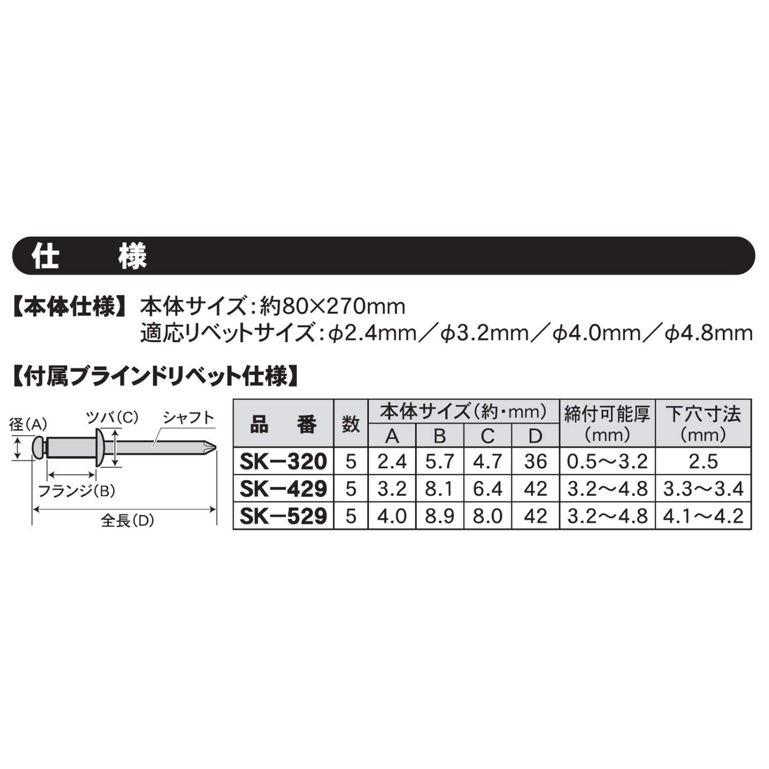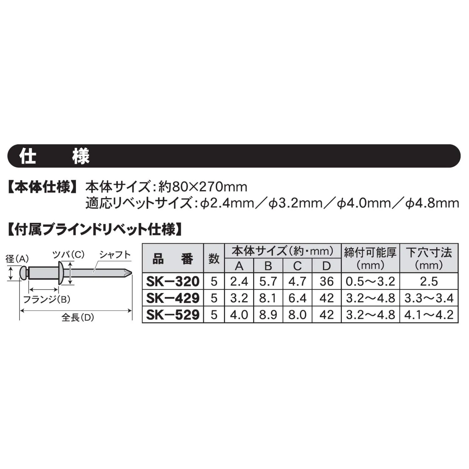 付属品:ブラインドリベットSK-320・SK-429・SK-529×各5本