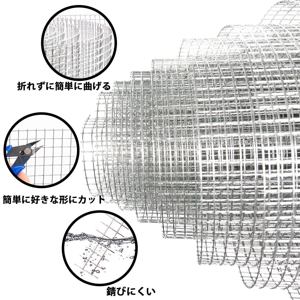 【使いやすい】長さ3mで、簡単に好きな形にカットして作ることができます。多くのニーズを満たすのに十分な長さです。折れずに簡単に曲げることができます。金網の取り扱いに多くの時間を費やすことを心配する必要はありません。※手袋を着用するなど商品の取り扱いにご注意ください。