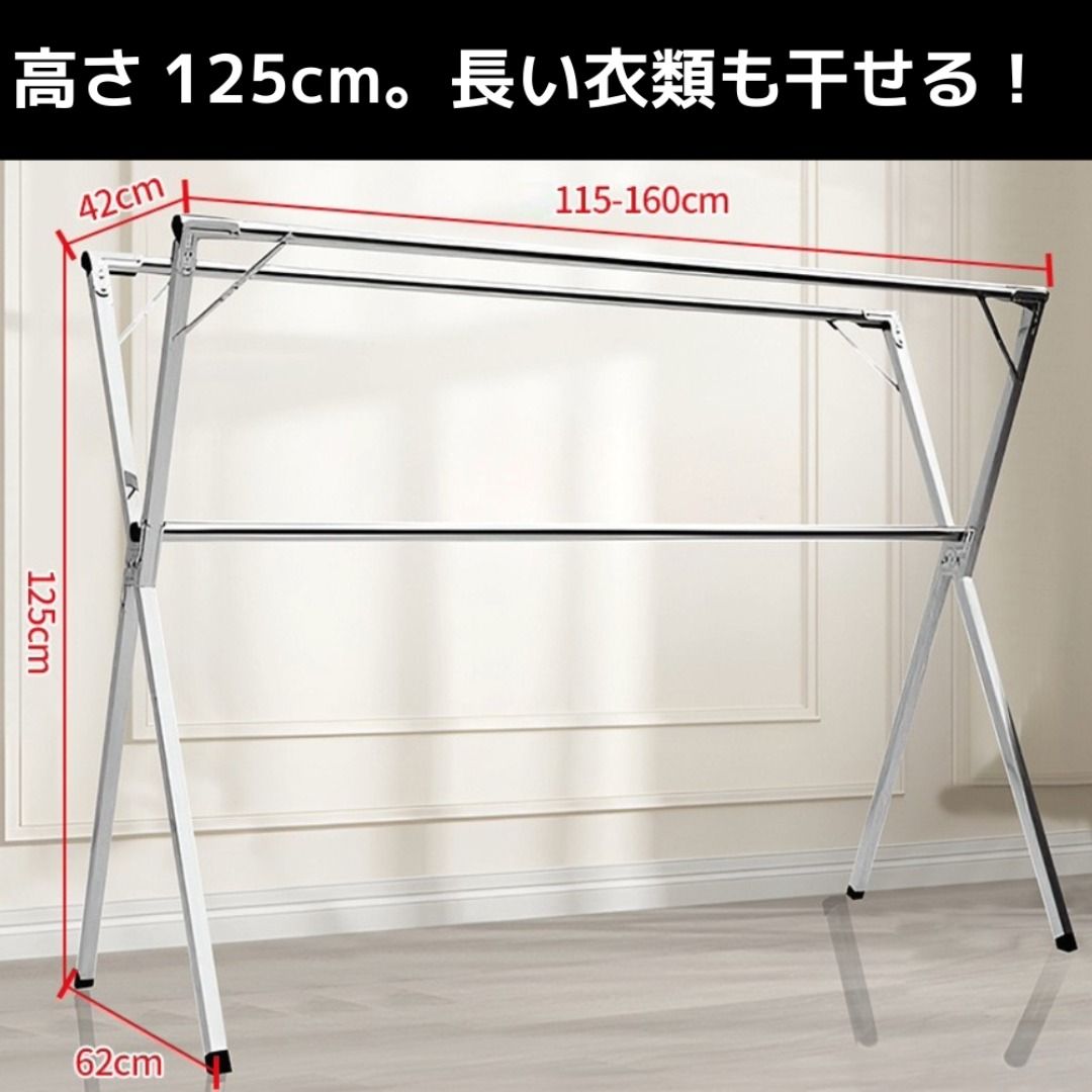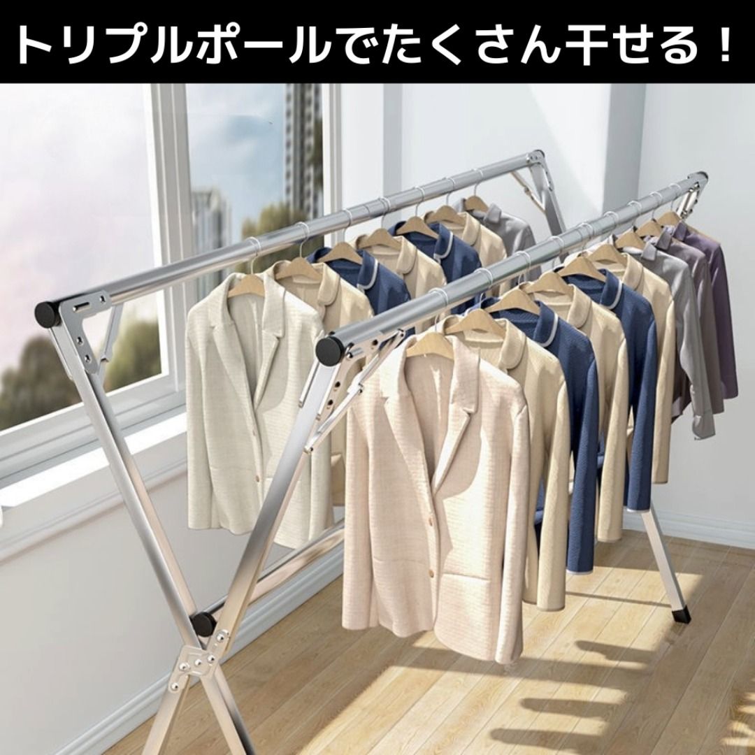 物干しスタンド 幅115〜160cm 伸縮式 トリプルポール 高さ125cm 折りたたみ 室内物干し 洗濯干し 布団干し ハンガーラック 省スペース