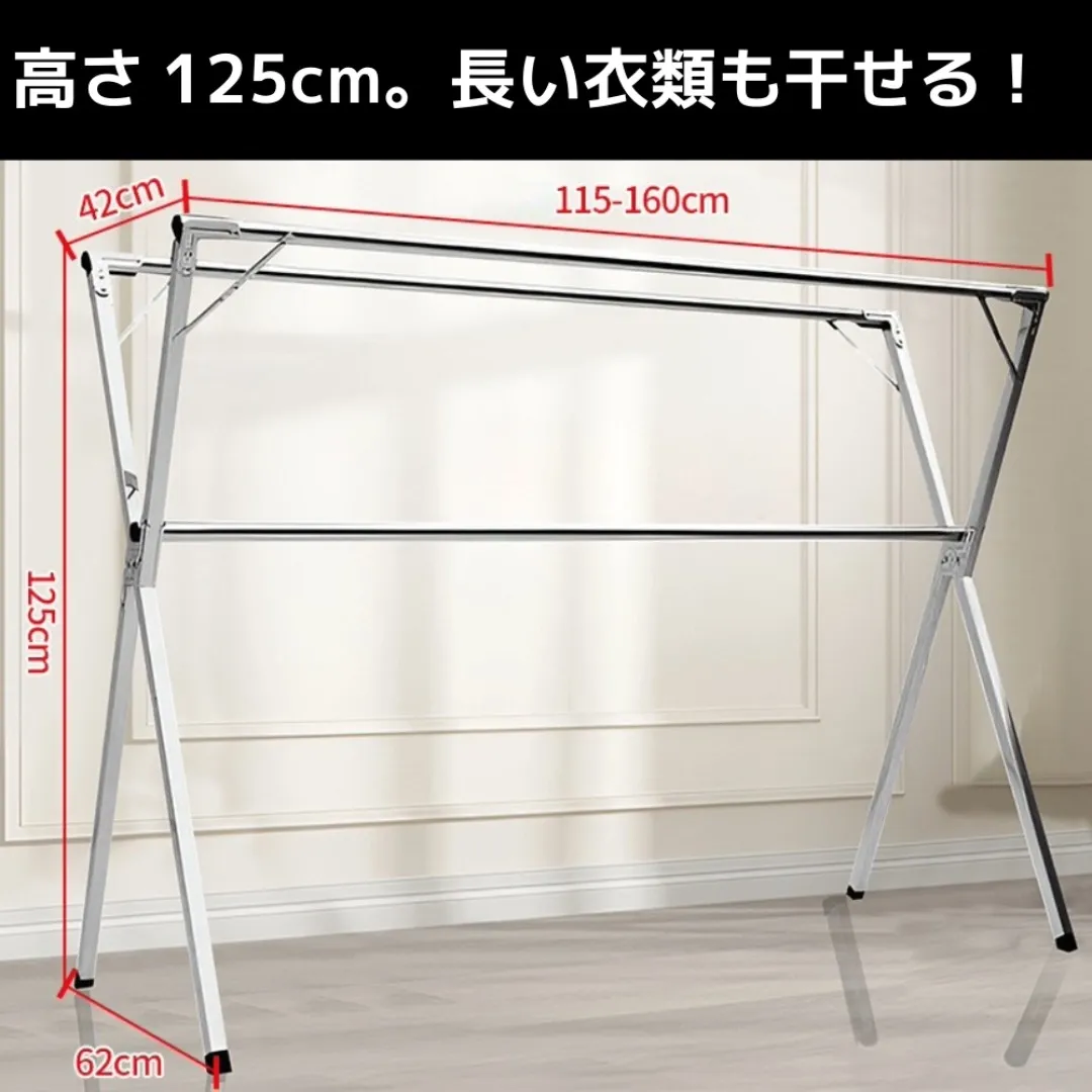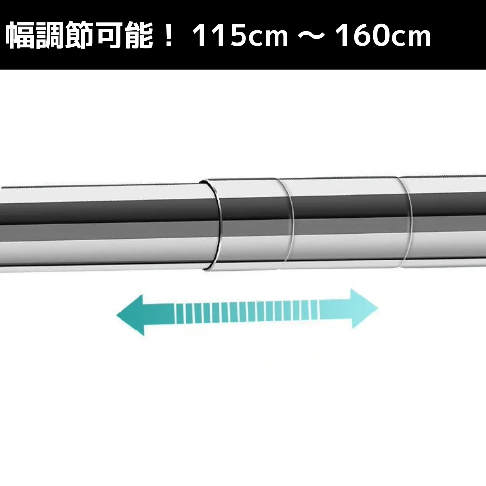 幅伸縮(約115〜160cm):洗濯物の量に合わせてサイズ調整