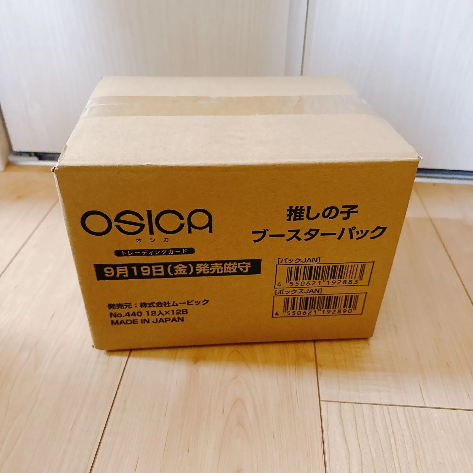 OSICAの推しの子 未開封カートン(12BOX入の未開封カートンです) - ブランド: OSICA - 商品名: 推しの子 ブースターパック - 発売日: 9月19日(金) - 数量: 12パック入り - 製造国: 日本 卸問屋より仕入れた正規品です。 カートン未開封の状態のまま、プチプチ等で梱包して発送させていただきます