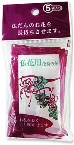お供え花用花持ち剤は、ご家庭用のお供え花用鮮度保持剤です。 水揚げを促進し、十分な栄養を与え、切り花を長持ちさせます。 ・生け水のニオイ、ヌメリを、匂いを抑えます。 ・金属製花器にも使用できます。 ・お花立ての洗浄の手間を軽減します。 ・花を美しく、長く咲かせ、日持ちを延ばします。 水揚げを促進し十分な栄養を与え切り花を長持ちさせます。 小袋1袋を生け水500mlに溶かして使用してください。 金属製花器、バケツには使用しないで下さい。(ステンレス製には使用できます)