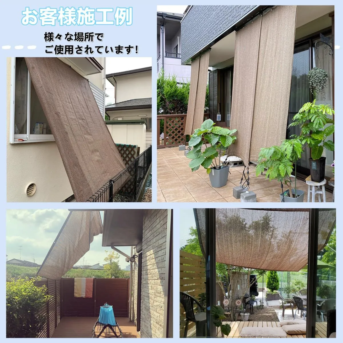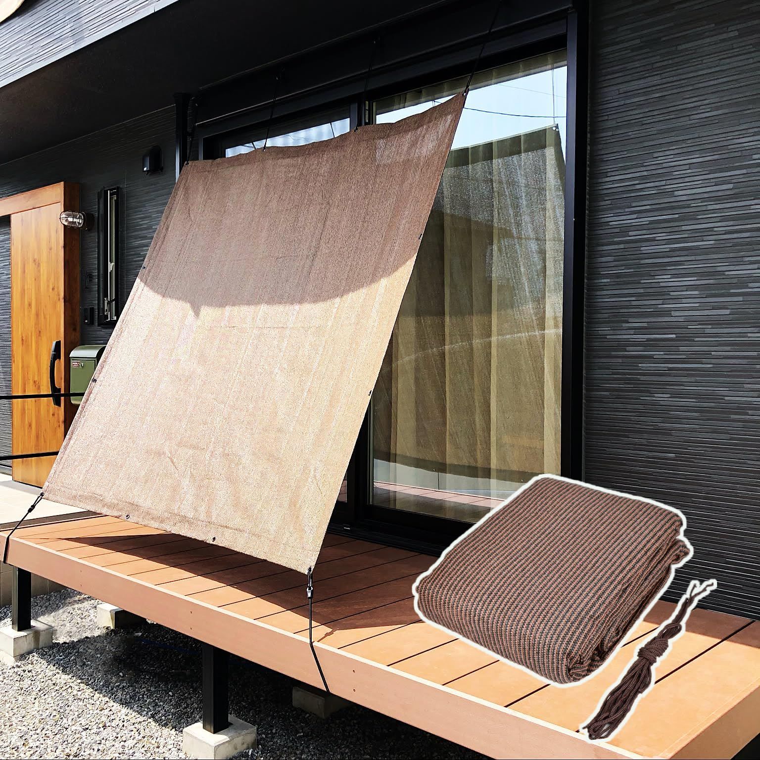 【適用場所】窓や庭先、玄関、ベランダ、ウッドデッキ、廊下、キャンプ、登山、海辺、天台、野外活動、駐車場など、さまざまな場所でご利用いただけます。洗練されたデザインのため、日よけだけでなく、ご自宅や庭のエクステリアとしてもお使いいただけます。