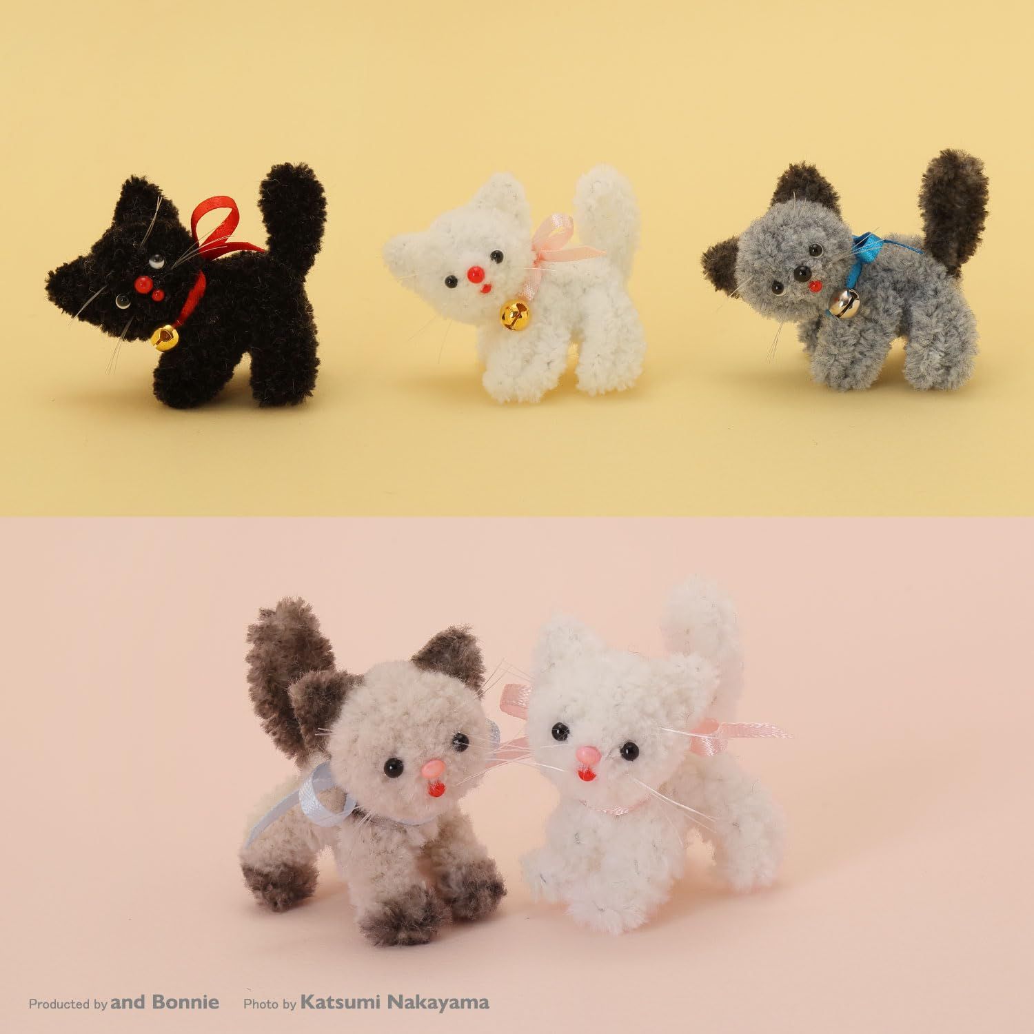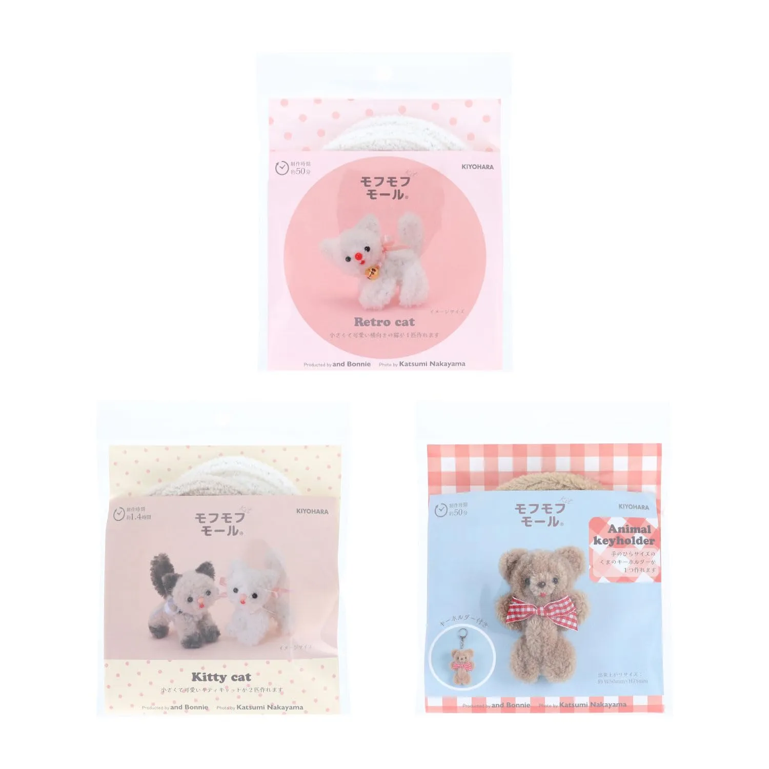 モフモフモールでかわいいミニチュア動物が作れるキットで、こちらに顔をかしげているカワイイ横向きキャットが作れます。オリジナルのモールアートでテディベア・ミニチュア動物制作を中心に活動しているand Bonnie(アンド ボニー)とのコラボアイテムです。