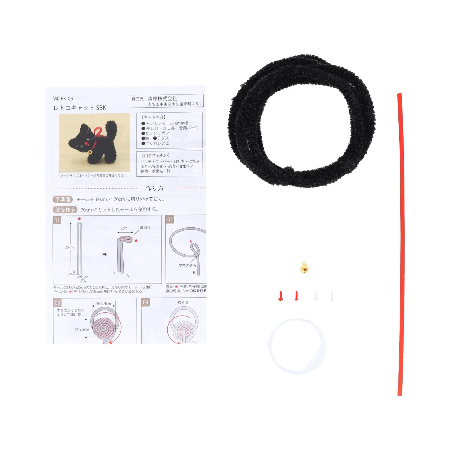 清原(KIYOHARA) モフモフモール ミニチュア動物 キャットが作れる レトロキャットキット SBK セサミブラック 作り方レシピ付き MOFK-09