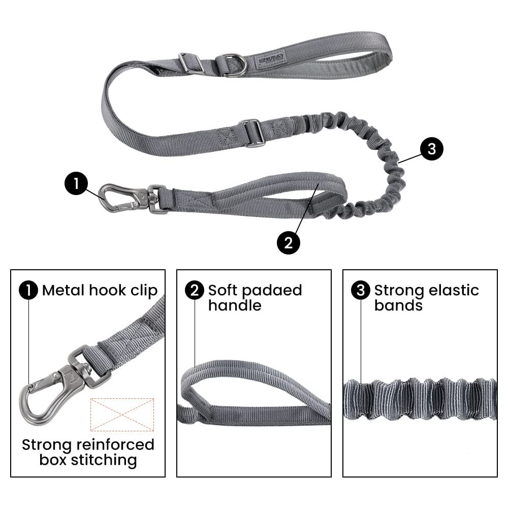 材料構成:この犬 リードは高品質で耐久性のある900D ナイロン素材と高弾性ゴムバンドで作られ、約200キロの重量に耐えれることがテストされました。高品質な亜鉛合金で作られていたバックルは以前より頑丈です。