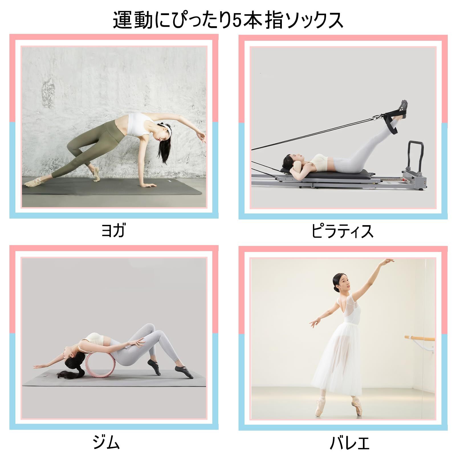 [Amzbag] ピラティス 靴下 5本指ヨガソックス 3D滑り止め ピラティス ソックス つま先あり 通気性 抗菌防臭 速乾 色あせない 汗対策 おしゃれ 室内運動 ダンス バレエ ジム用 フリーサイズ(対応22-25cm)