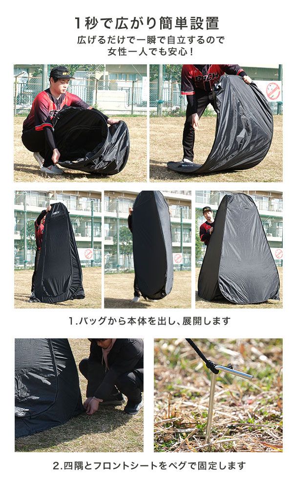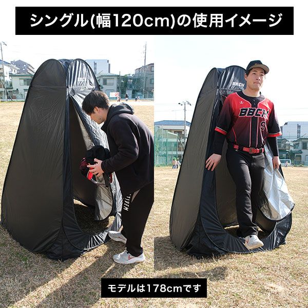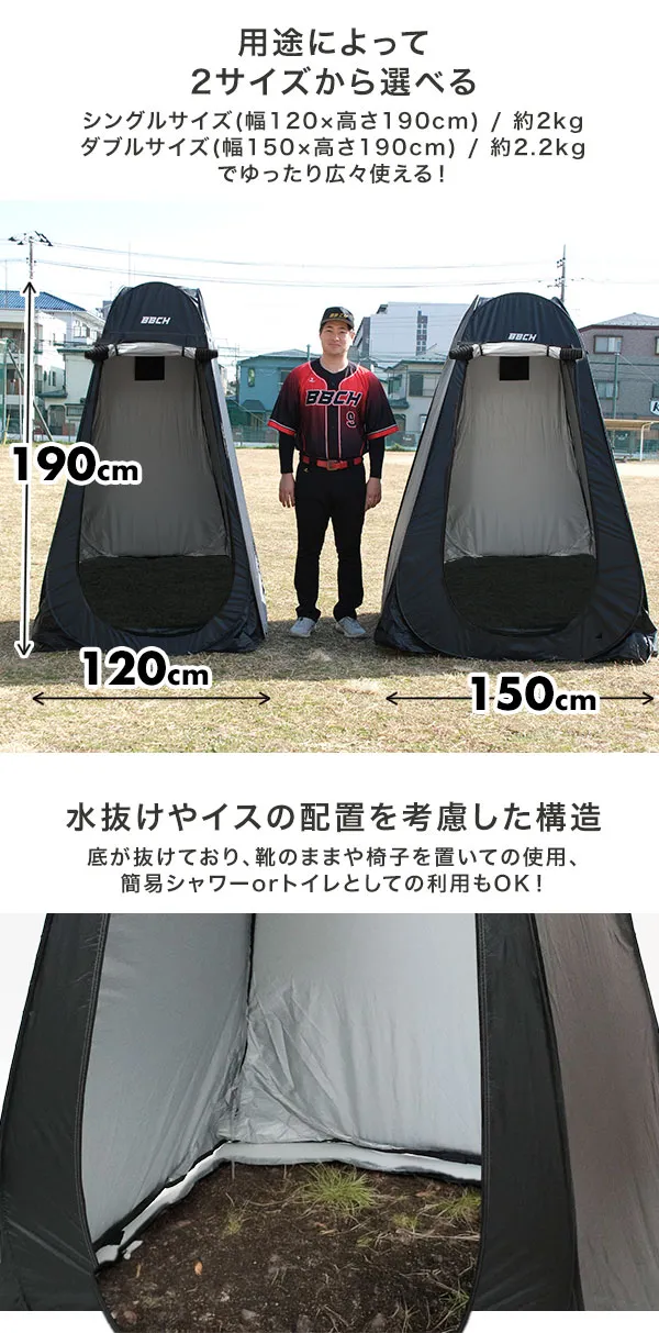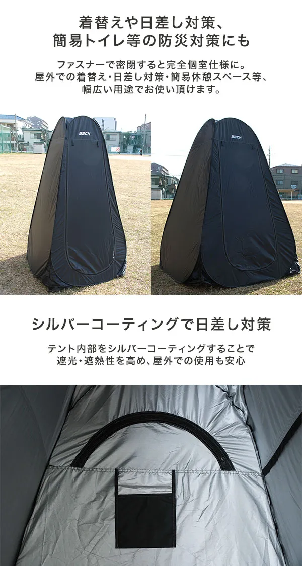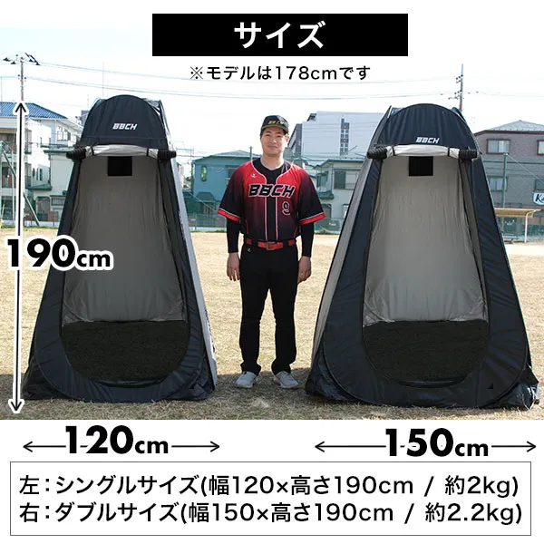 ●ブラック 黒 THE BASEBALL CHALLENGER BBCH ベーチャン ベースボールタウンオリジナル メンズ レディース ユニセックス 男女兼用 大人用 一般用 子供用 キッズ 学童 小学生 中学生 男の子 女の子 マルチスポーツ アウトドア 野球 ソフトボール サッカー フットサル ゴルフ バスケットボール バレーボール テニス 卓球 バドミントン バトミントン 陸上 トラック競技 ランニング ジョギング マラソン トレッキング ウォーキング ジム 練習 トレーニング 部活 クラブ活動 着替えテント 更衣テント 着替え用テント プライベートテント 個室テント プライバシーテント 簡易更衣室 簡易個室 着替えスペース ポップアップテント ワンタッチテント 自立式テント スポーツテント アウトドアテント 立ったまま着替え 190cm 高さ190cm 軽量 コンパクト収納 収納バッグ付き 目隠しテント 遮光テント 日よけテント シルバーコーティング 撥水 防風 ペグ付き 屋外用 屋内用 キャンプ 海水浴 ビーチ フェス 運動