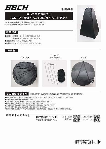 ※このページは「着替え用テント 幅150×高さ190cm」用です。