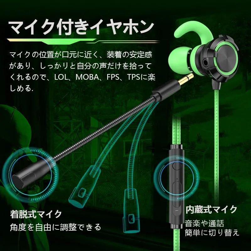 [日本国内販売限定 2025年NEWモデル] ゲーミングイヤホン マイク付き Switch ps4 ps5 対応 3.5mm ジャック ゲーミングヘッドセット ゲームイヤホン pcパソコン イヤホンマイク 有線 カナル型 ボイスチャット ヘッドセット 子供 PS4 ゲームイヤホン マイク テレワークスイッチ Skype Zoom会議 ゲーム スマホ