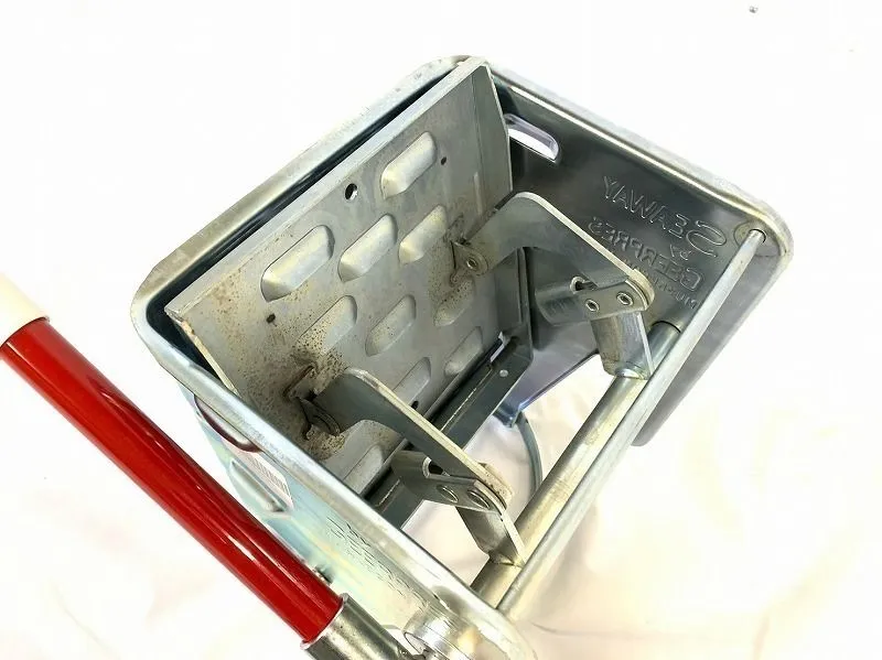 ・ バケツに備え付けて使用するモップ絞り器です。