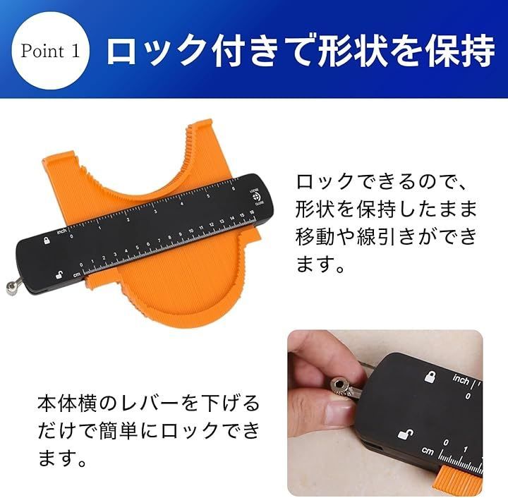 「ロック付きでずれない」ロック機構を搭載しているので、測定後の形状をしっかり保持し、転写作業をスムーズに進められます。