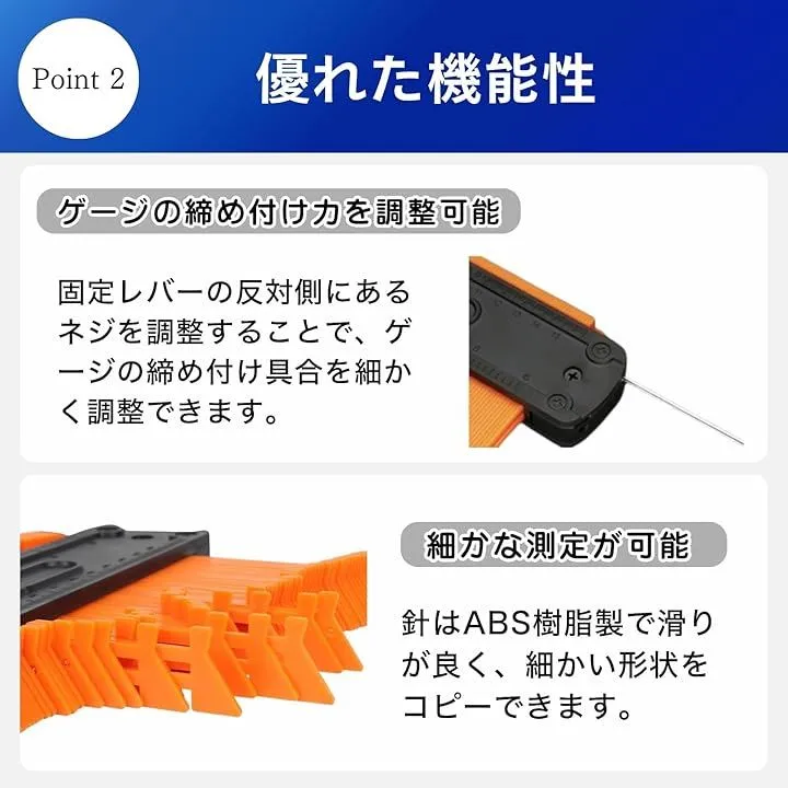 「複雑な形状を瞬時に再現」凹凸や曲線のある対象物の形状をそのまま写し取れるコンターゲージです。