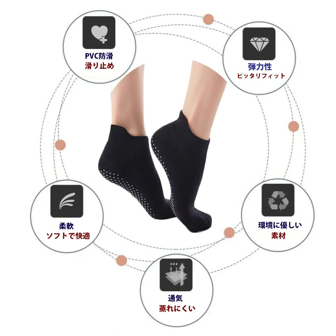 [AVILMORE] ヨガ ソックス 滑り止め付き 靴下 ピラティス ウェア ホットヨガ ヨガウェア レディースくつ下 健康ソックス 吸湿 速乾 転倒防止