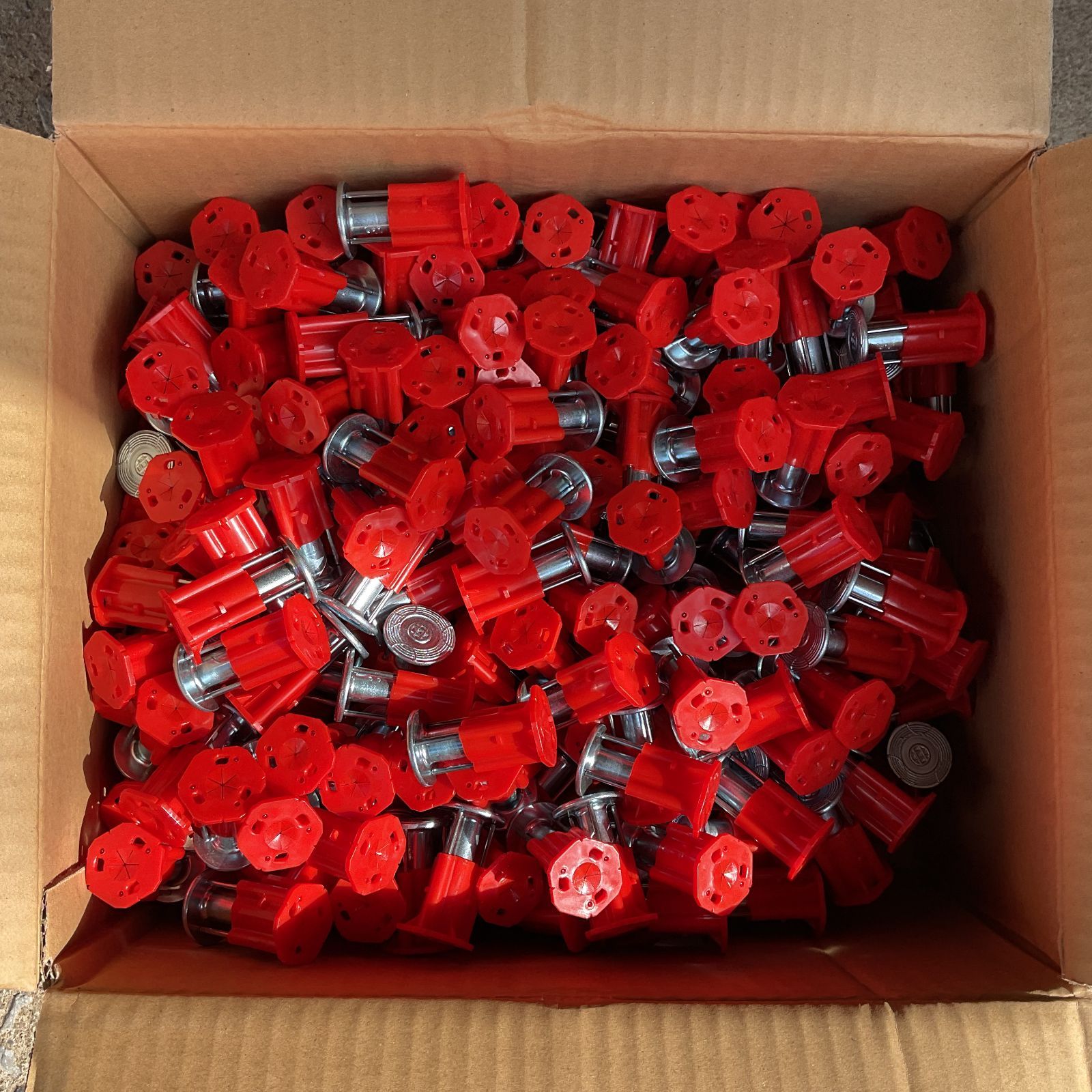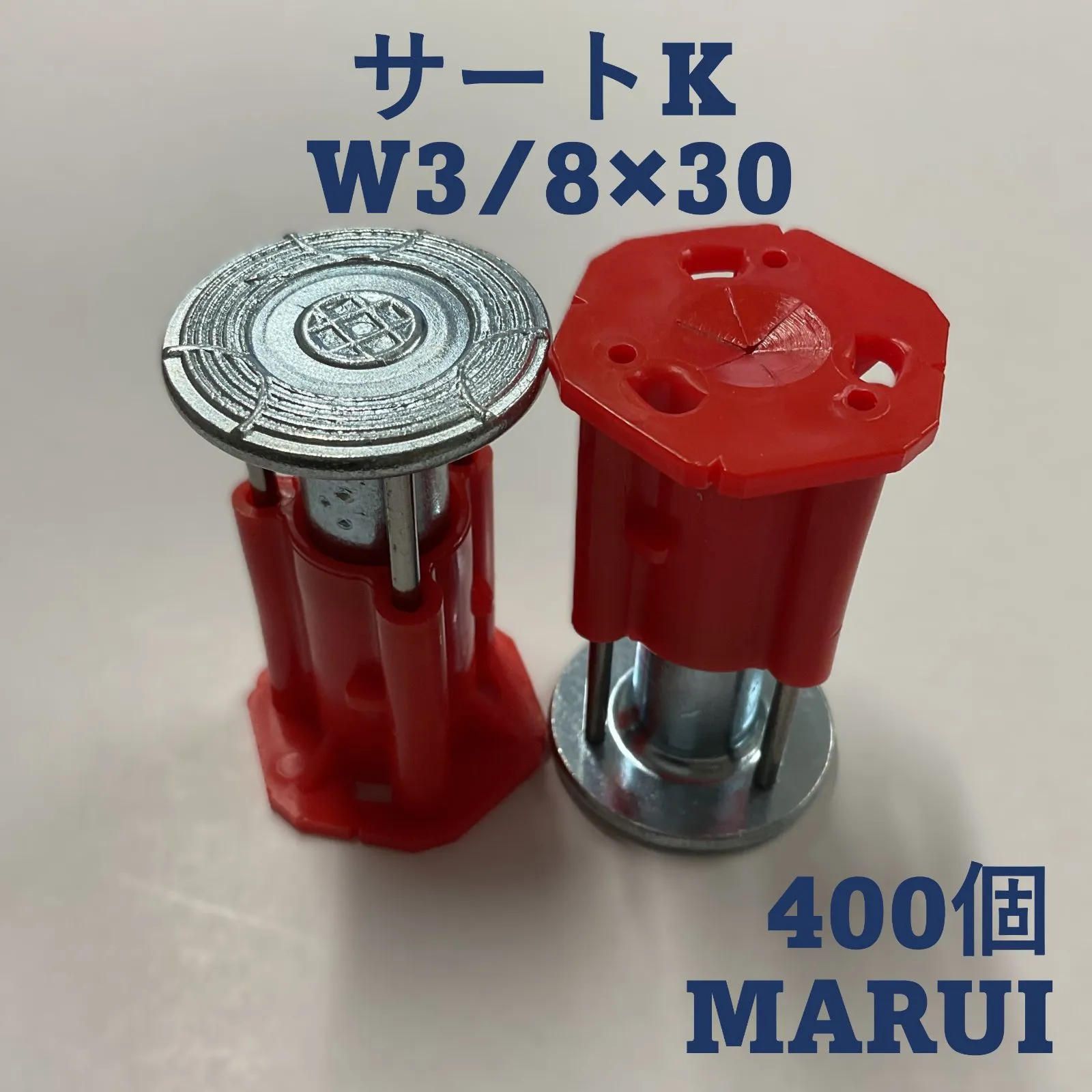 ・倉庫保管、未使用品。 ・未開封でしたが、状態確認と写真撮影のために開封しました。 丸井産業 マルイ MARUI サートK インサート 型枠インサート 型枠用インサート 天井インサート クギプラエース クギトレ S型 W3/8×30 レッド 赤 400個