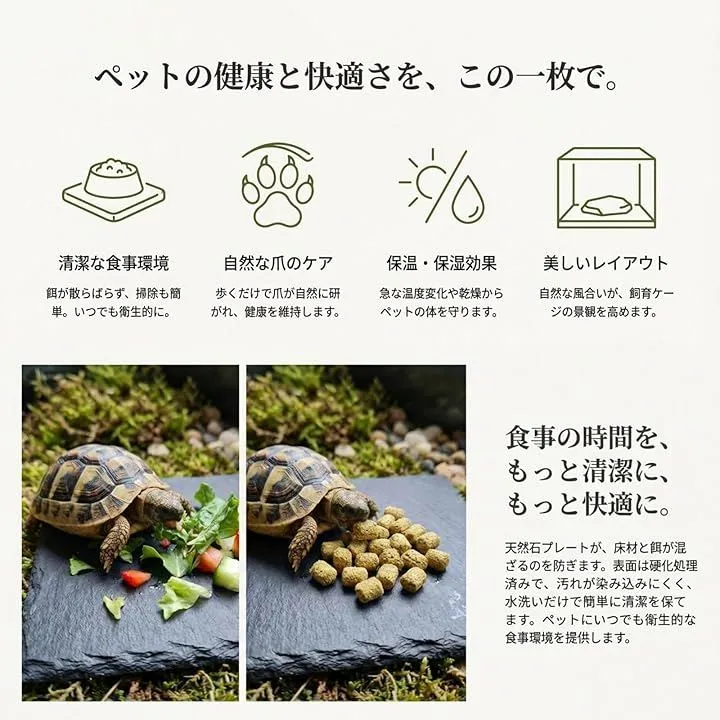 「自然な爪磨き効果」乾燥床材は、爬虫類や亀の爪を自然に磨き、滑らない表面で安全に動き回れます。