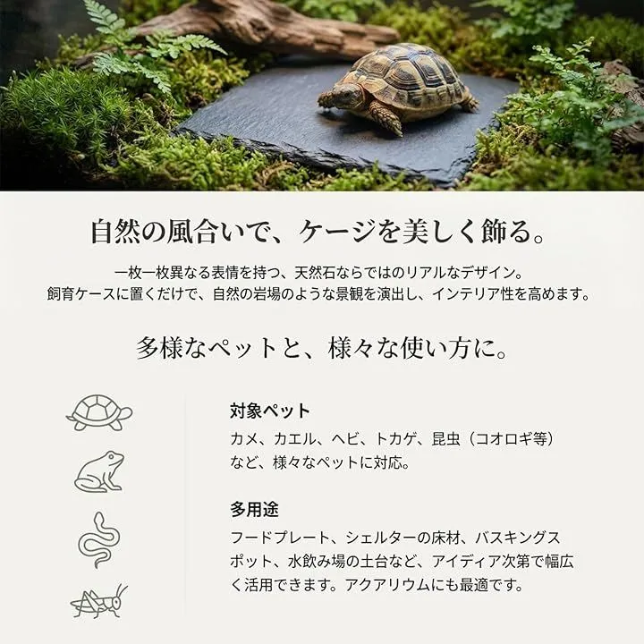 「リアルなデザイン」石や岩を模したデザインが飼育ケースを美しく飾り、インテリア性を高めます。